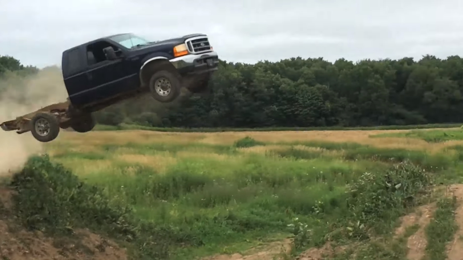 Meet Mark Freeman, the genius behind the “Mark Freeman #408” YouTube channel, where he dedicates most of this amateur moving picture experience to all kinds of full-send things that include absolute and awesome automotive carnage—and evening blowing a few things up. In one of his latest videos, Freeman and his buddies team up to find out how far a Ford F-250 Super Duty can jump. Or should we say, fly?