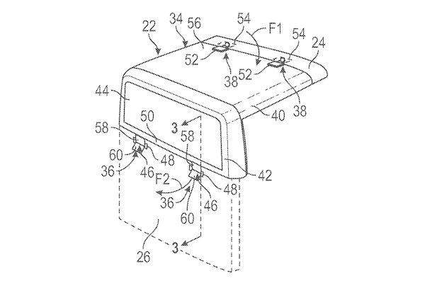 Images from the documents published Sept. 26 by Patent Swarm depict removable roof assemblies held on by two pairs of latches and an “alignment bracket” that essentially wedges itself down against the front edge of the bed. In theory, all that you need to remove this roof is a pair of hands and enough muscle to lift the assembly once it’s loose.