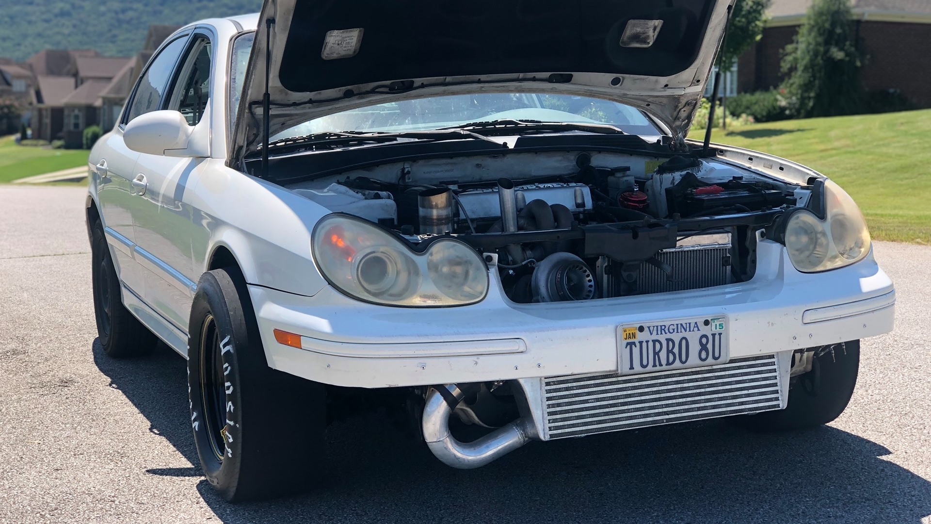 For most people, the question of “how fast can I go for as little money as possible?” is answered by sticking to the beaten path; by buying a car with a stout aftermarket. But some people have a fierce streak of individuality that leads them to seek speed where others wouldn’t, and these are the kinds of people who build cars like the one you see here: a 2004 Hyundai Sonata making over 500 horsepower with a mix of almost-stock internals and bolt-ons borrowed from other cars.