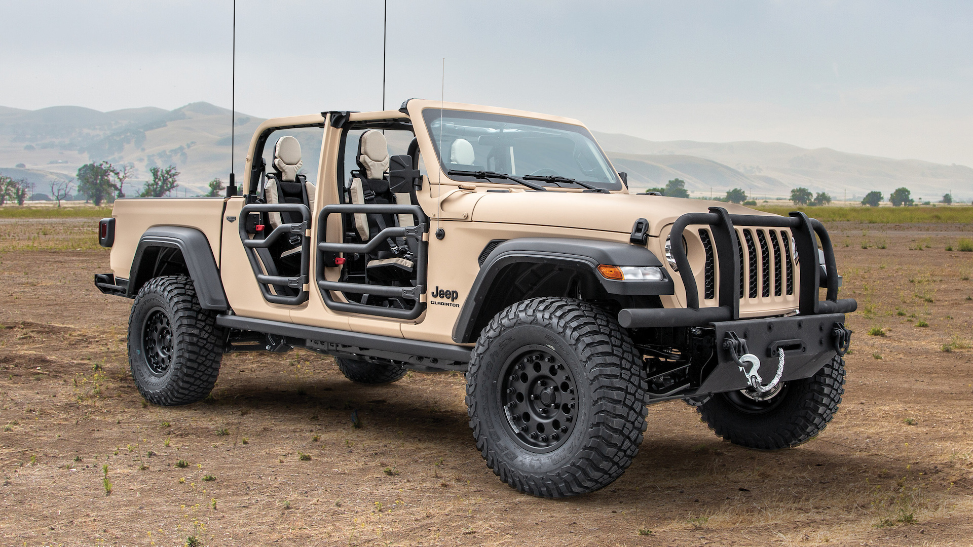 AM General and FCA touts the Jeep Gladiator’s base capabilities as the driving factor behind this plan. The standard Gladiator that the concepts are based on uses a 3.6-liter V6 that makes 285 horsepower and 260 pound-feet of torque and can tow up to 7,650 pounds with the Max Towing package. It’s also possible that a future military application could sport Jeep’s new diesel engine. Whether any of that could live up to real military use isn’t clear yet, though modern military Jeeps have been field-tested before with the J8.