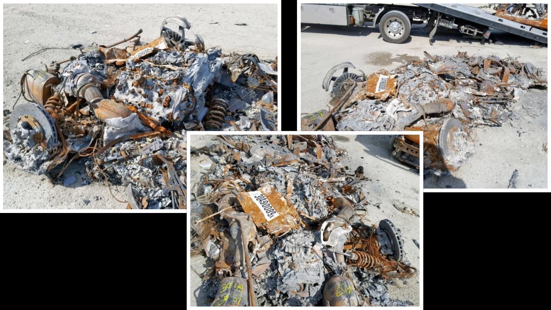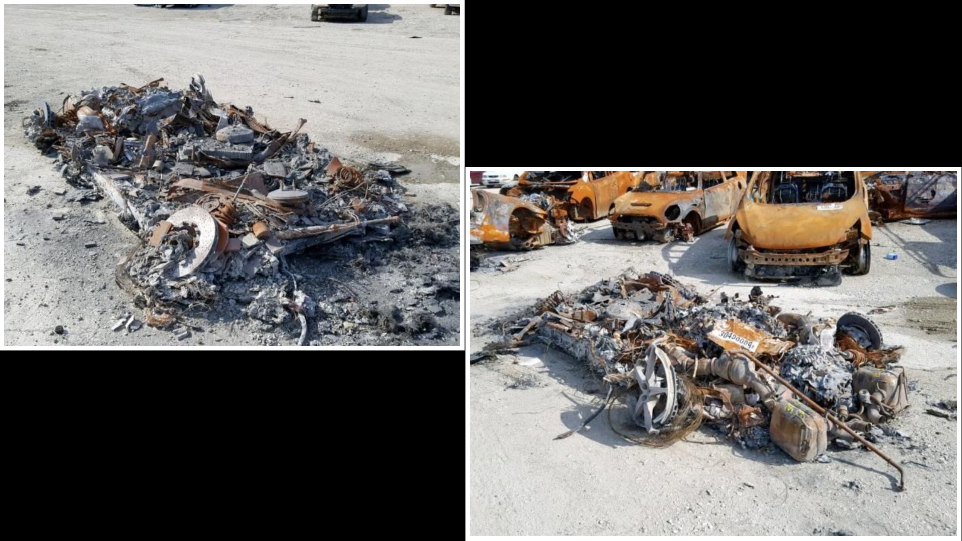 Few details are offered as to how the Ferrari came to be little more than a pile of ash, melted aluminum, shards of steel, two errant carbon-ceramic brake discs, and part of the 4.5-liter V8’s block. What Copart does share is that the auction doesn’t include the car’s keys and that the primary damage was “BURN.” We couldn’t have guessed.