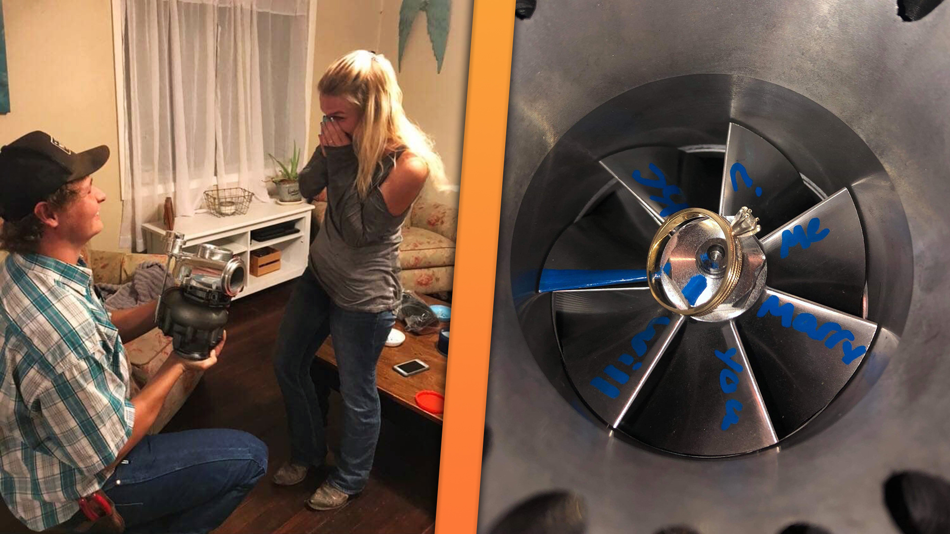 Fortunately, the man’s girlfriend loved the idea and immediately said yes. Not only about to the ring, but also to the turbo – the man says that she can’t wait to hear what it sounds like on her truck. It calls to mind a recent viral story where a couple blew up the internet taking cliched holding-the-newborn-child photos with their new Eaton supercharger. Hey, we may have just uncovered the ultimate way to buy car parts without being scolded.
