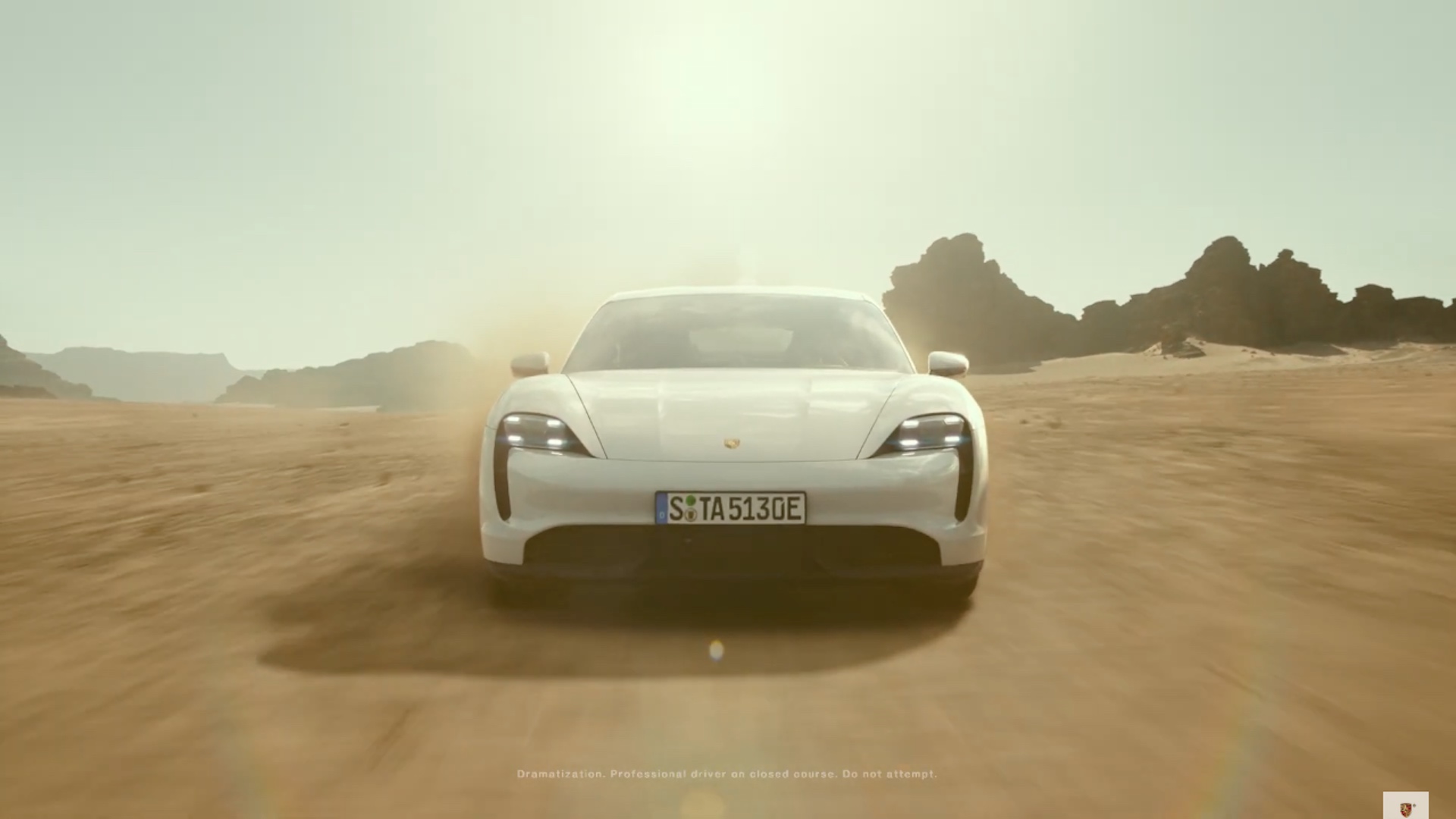 In the ad, a Taycan and a TIE Fighter like the one piloted by Kylo Ren (formerly Ben Solo) in the film’s original teaser speed through a desert environment, doing as the ad’s title suggests: Kicking up dust. They appear to be rushing headlong toward one another, but they never share a frame, so it appears to be more a cinematic recreation on Porsche’s part rather than an intergalactic game of Chicken.
