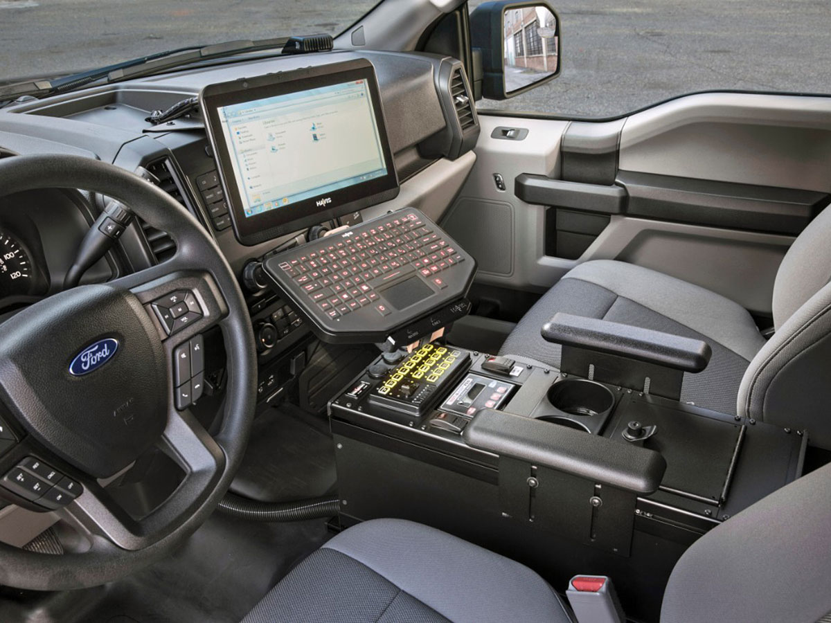 The biggest differences between the Special Service Vehicle (SSV) and the rest of the F-150 family are the details designed to make life easier for the specific needs of cops and other fleet customers. A heavy-duty 240 amp alternator helps ease the strain on the engine that comes from long periods of idling. The center seat in the front-row bench has been yanked, enabling buyers to install job-specific aftermarket accessories like laptop stands, gun racks, small espresso machines, etc. And both the floors and the rear bench are upholstered in vinyl to facilitate clean-up when the backseat passenger decides to expel one or more bodily fluids.