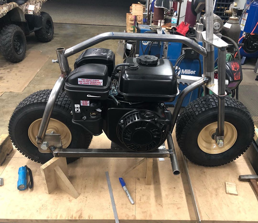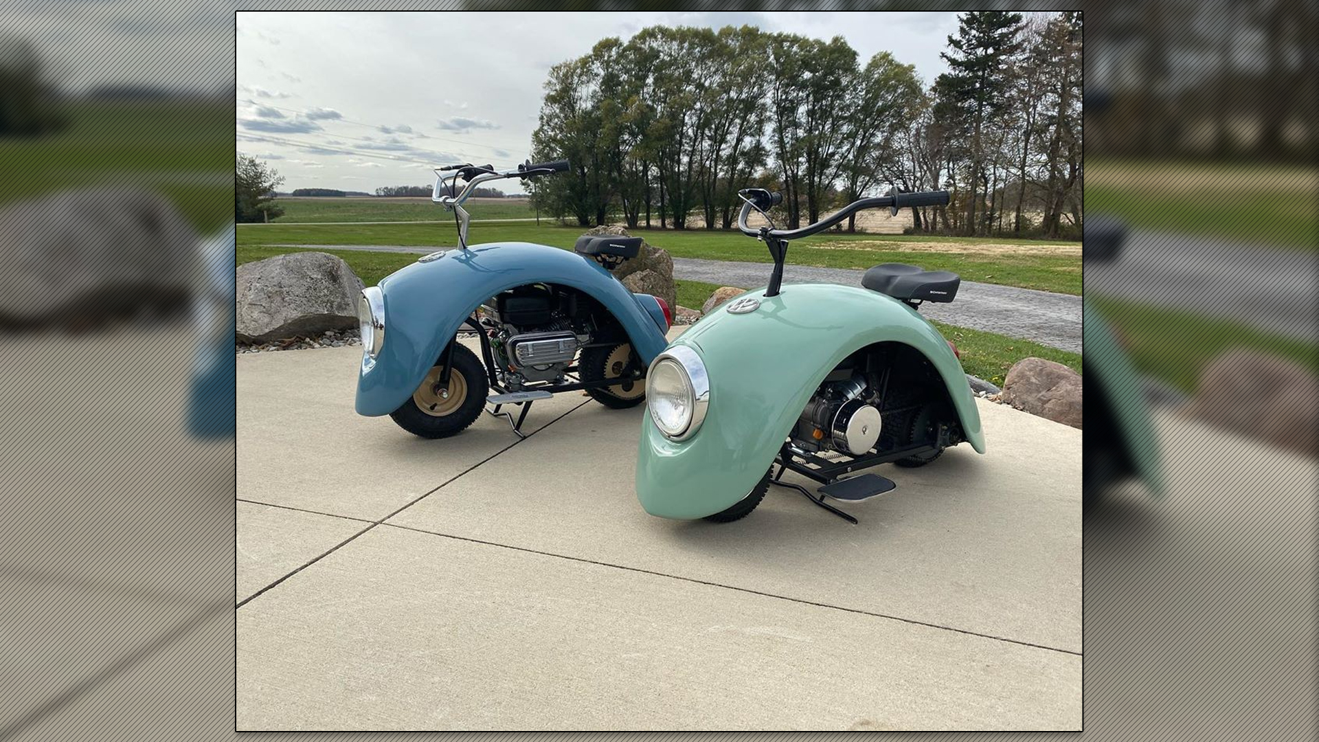 So far, Walter has built two different examples of the Volkspod, both of which are coated in shades of paint to match their Volkswagen heritage. The birch green example is equipped with a 79cc powerplant, while the pastel blue variant (which Walter calls “Version 2”) supposedly has a stouter 6.5-horsepower engine in place.
