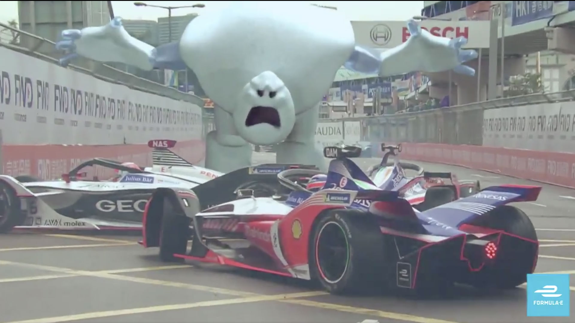 Probably the best incorporation of post-production add-ins is Marshmallow, a close relative to the abominable snowman, who scares a handful of cars into a crash around a tight corner. Oh, and we’re also fans of the snowplow that was fitted to the front of Oliver Rowland’s No. 22 Nissan E.Dams entry.