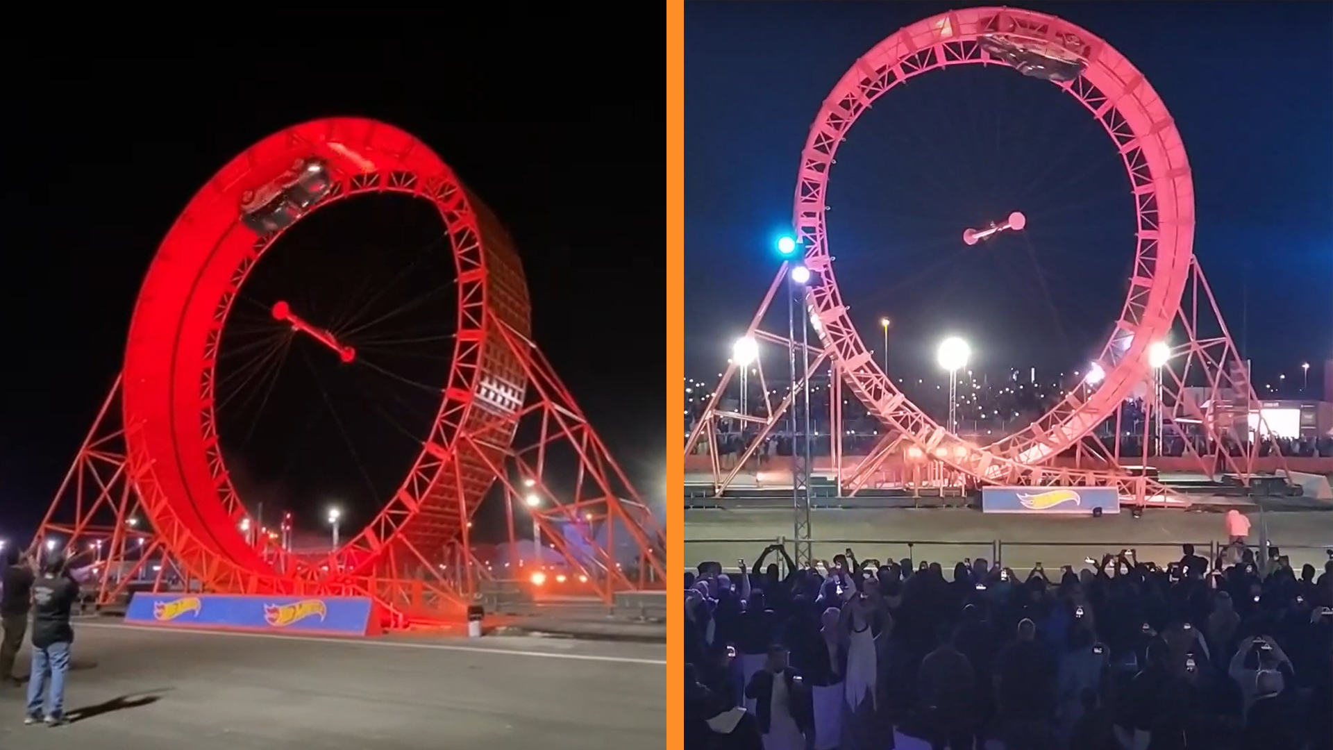 The stunt itself consisted of a specially constructed orange loop which, as you’d expect, looks like an enlarged version of the ones typically built using miniature Hot Wheels racetrack kits. It was tall enough to earn Grant, a well-known automotive stunt man, a Guinness-certified world record.