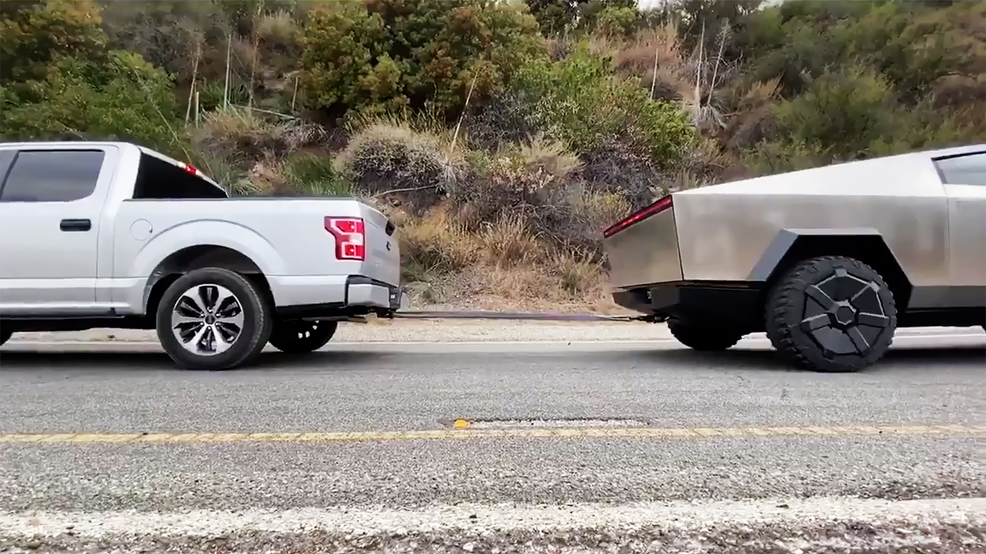 As most people tried to comprehend what they were seeing on Thursday night, a few keen observers quickly pointed out that the F-150 tug-of-war video played during the Cybertruck reveal seemed lopsided. The scrutiny intensified on Sunday when Musk tweeted out a longer version with multiple camera angles; the Ford appears to be a rear-wheel-drive, EcoBoost STX model being yanked uphill by a dual-motor AWD Cybertruck. As none other than pop physicist Neil deGrasse Tyson later pointed out on Twitter, the setup puts relatively little weight over the F-150’s drive wheels and thus gives it less traction, not to mention the apparent power gap.