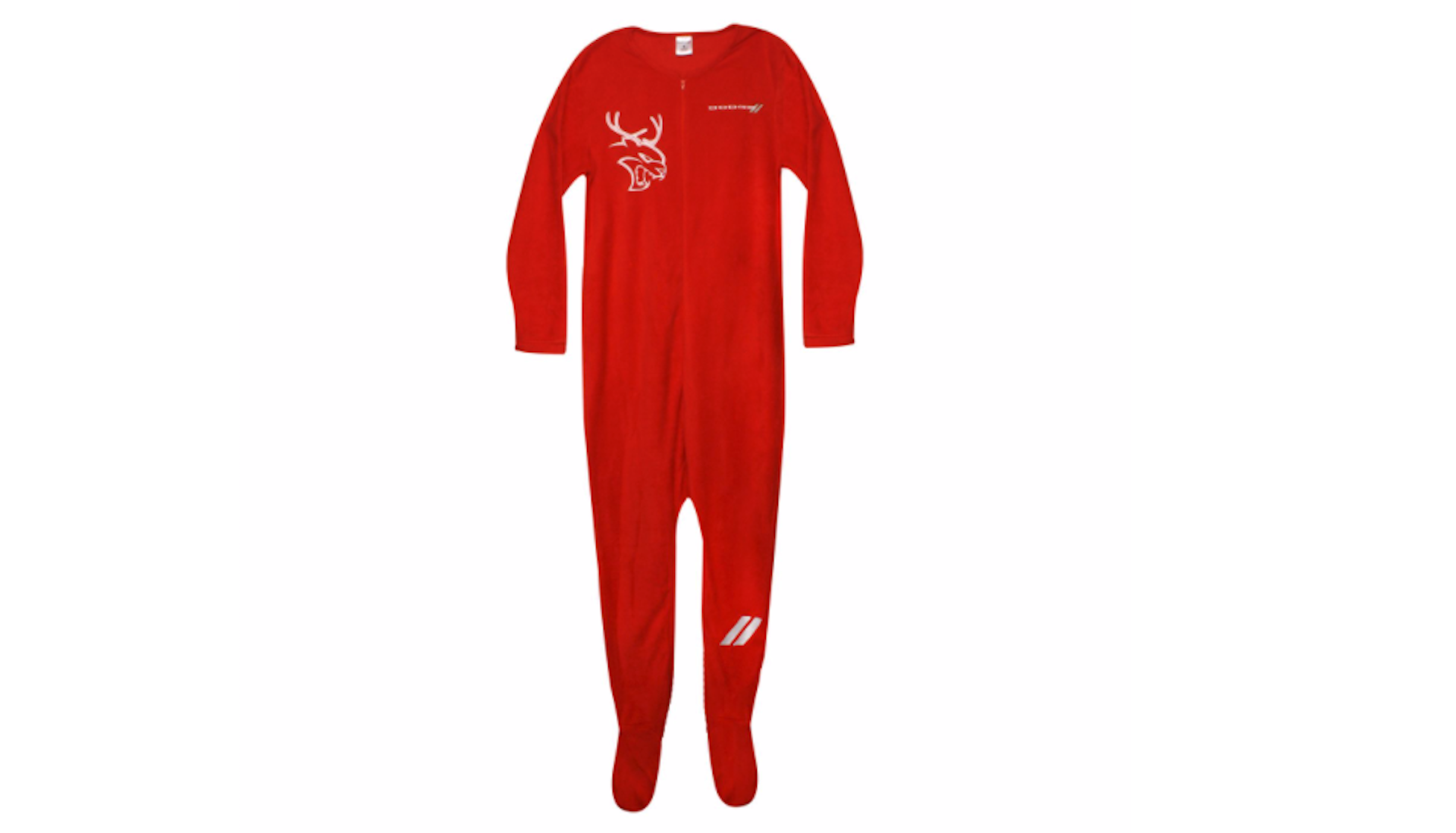 We found this gem of the high fashion world on the Dodge merchandise website this morning while perusing the automaker’s new Challenger 50th anniversary clothing line. And interestingly enough, it was listed in the men and women’s “Casual Wear” section. Crafted from 100% polyester fleece and sporting the Dodge and Hellcat Reindeer logos on the chest and knee, the warm and cozy couture suit is bound to be the perfect attire for completing multiple food-gathering trips between your dining room table and living room couch.