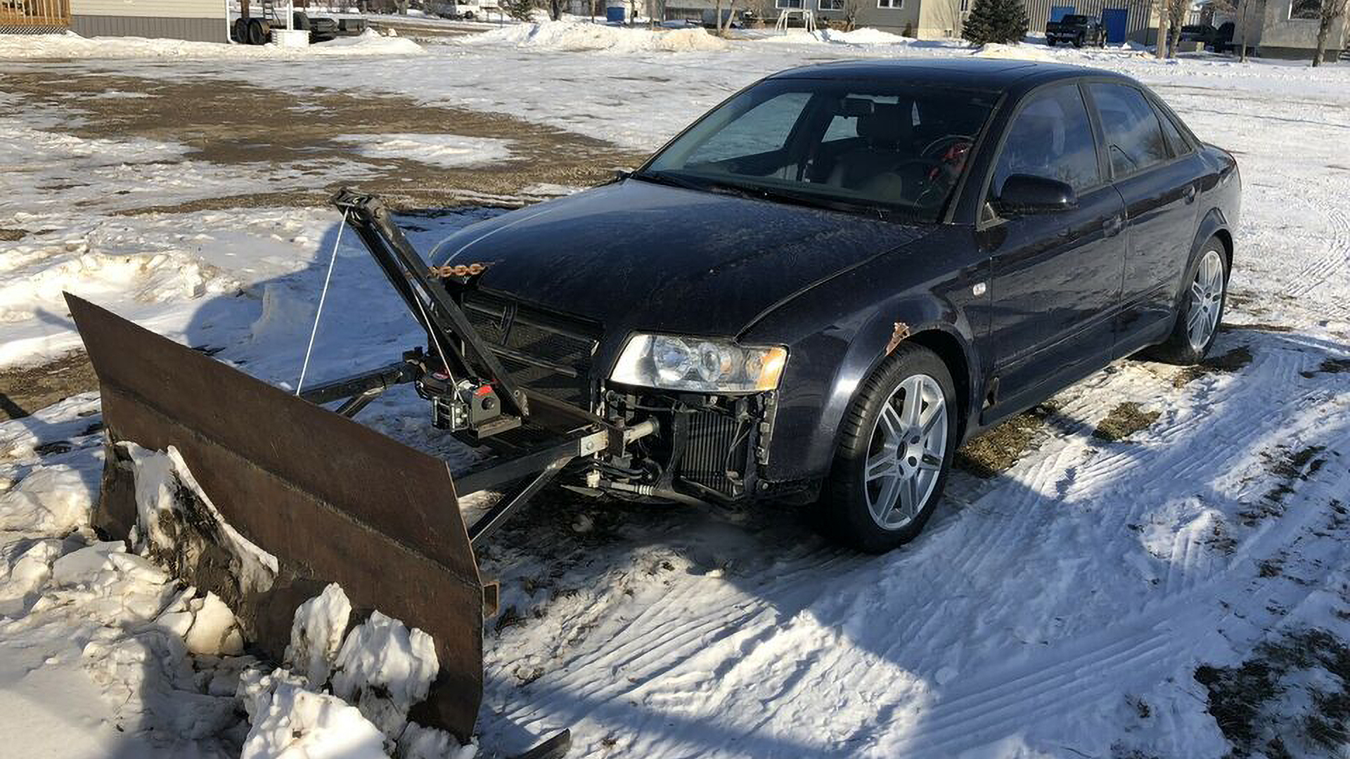 ‘Tis the season for snow days as we approach the first of winter with plow trucks ruling the country’s ice-slickened roads. Usually, said plows are fitted to burly, heavy-duty pickups, but what if you needed a makeshift solution? Something a little more compact? Say no more, because we’ve found the ultimate Audi A4 beater up north for just $1,200.