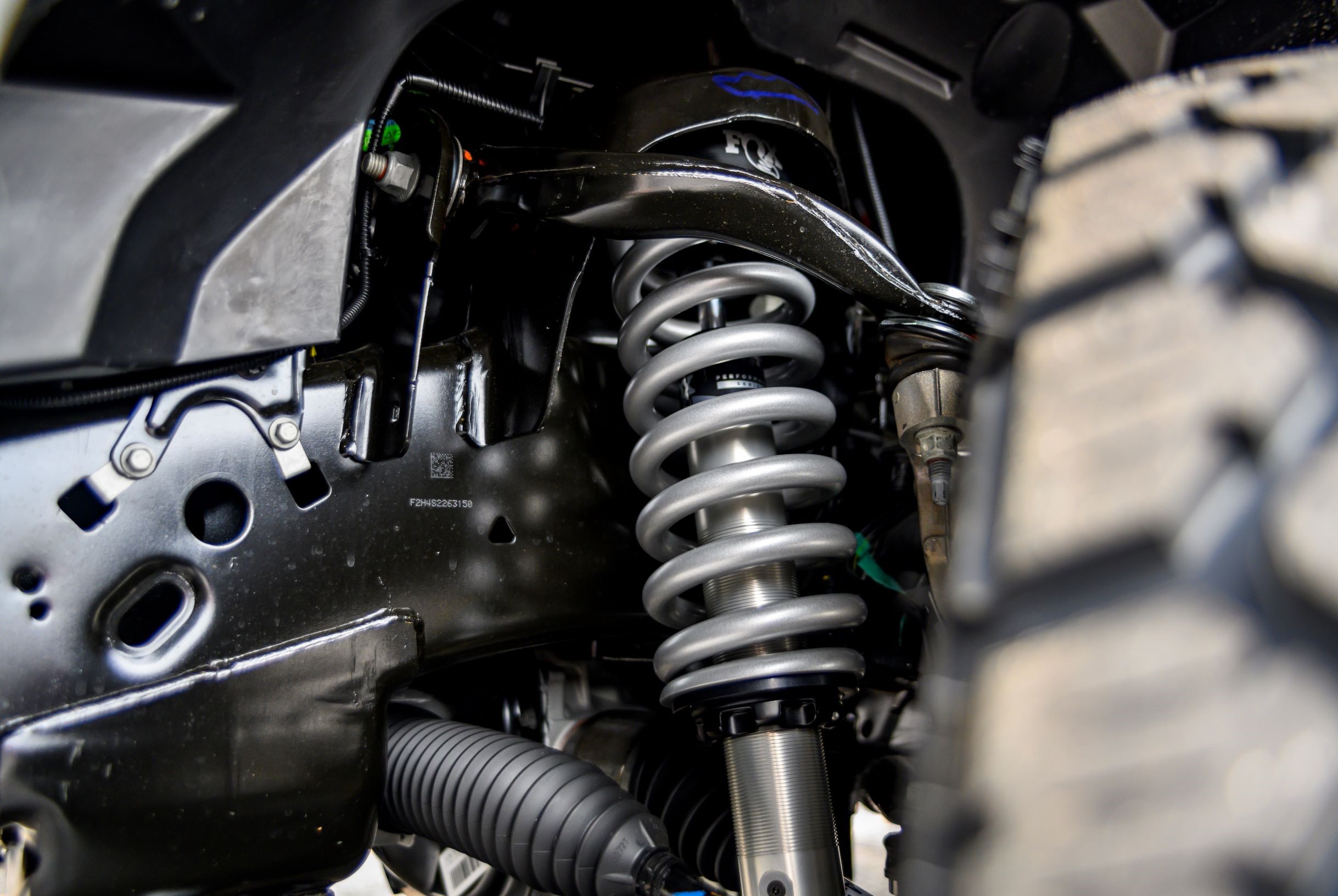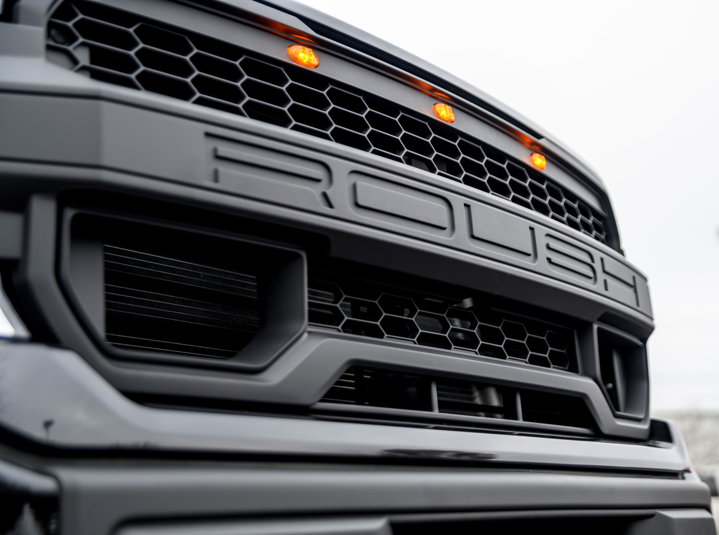 The Ford truck’s enhancements go beyond cosmetics. All-new 20-inch matte black wheels and 33-inch General Grabber all-terrain tires are attached to Roush/Fox 2.0 coilovers for greater travel and tire clearance. A dual-exit catback performance exhaust system is also standard.