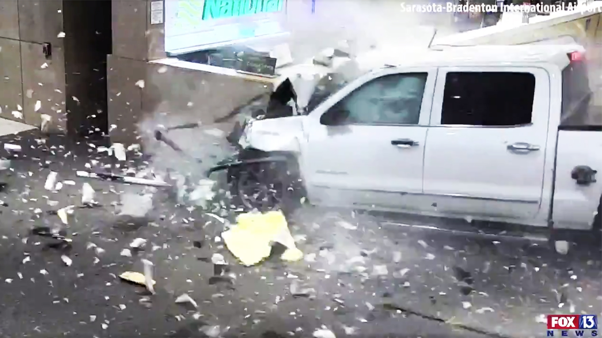 The driver of a previous-generation GMC Sierra 1500 was involved in a nasty accident that saw the half-ton pickup truck blast into the Sarasota-Bradenton International Airport at a high rate of speed. Despite the violent impact, no fatalities were reported but the driver of the truck is in serious condition at Sarasota Memorial Hospital, according to the Florida Highway Patrol.