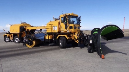 Airports are prohibited from using salt on runways by the Federal Aviation Administration, so the MB5 also has a dry chemical spiller on the back.