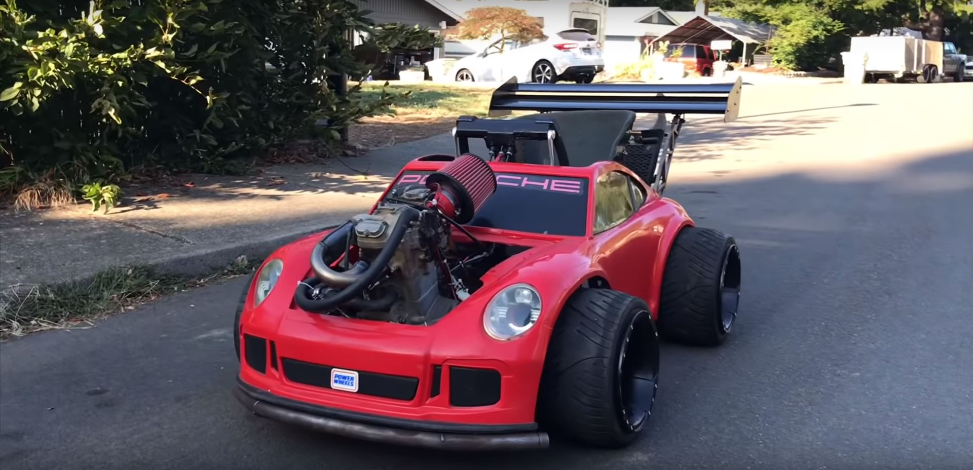 As for driving it around, the build looks properly insane and has the soundtrack to back up the looks. The 450cc engine thumps away with each press of the gas and definitely doesn’t sound like the high-wailing 4.0-liter flat 6-cylinder engine of the Porsche. It sounds mean and has some seriously impressive turning capabilities. It also pulls wheelies.