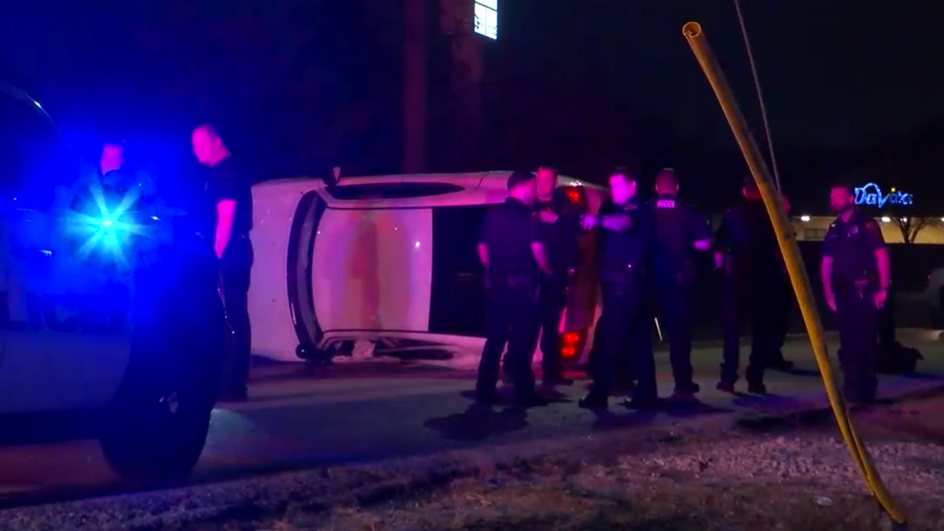 According to Houston Police Department Lieutenant Christopher Bruce, the chase started around midnight when the officer tried to pull a speeding driver over in east Houston. Instead of stopping, the driver sped away, and the chase was on. The flip occurred about three minutes into the chase. The officer was able to get out of the car on her own, but the suspect escaped.