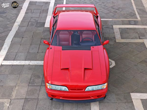 Arellano set to work mocking up a fusion of the F40 and a 1993 Mustang Cobra, heavily modifying each car’s lines to work with one another.
