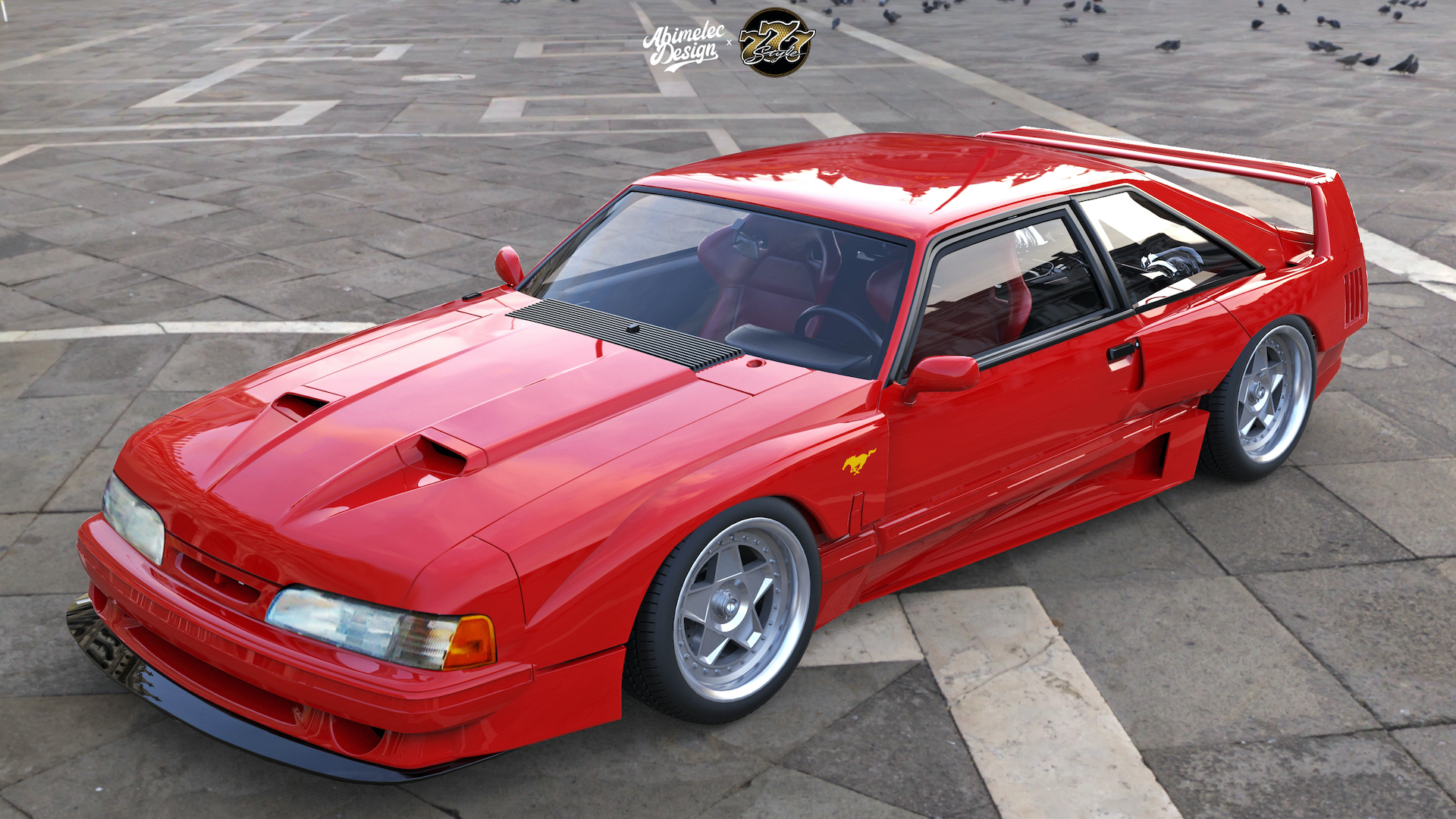 This car is the brainchild of Ron Baugh, who began to wonder in the wake of the Ford Mustang Shelby GT350‘s announcement in 2015 what the best possible use of its 5.2-liter, flat-plane-crank “Voodoo” V8 could be. Baugh’s mind wandered directly to a mid-engined “Foxbody” Mustang with a louvered, F40-style Lexan engine hatch and a pair of turbochargers (as we all do), but the idea didn’t progress much further until last December when Baugh shared his vision with render-meister Abimelec Arellano.