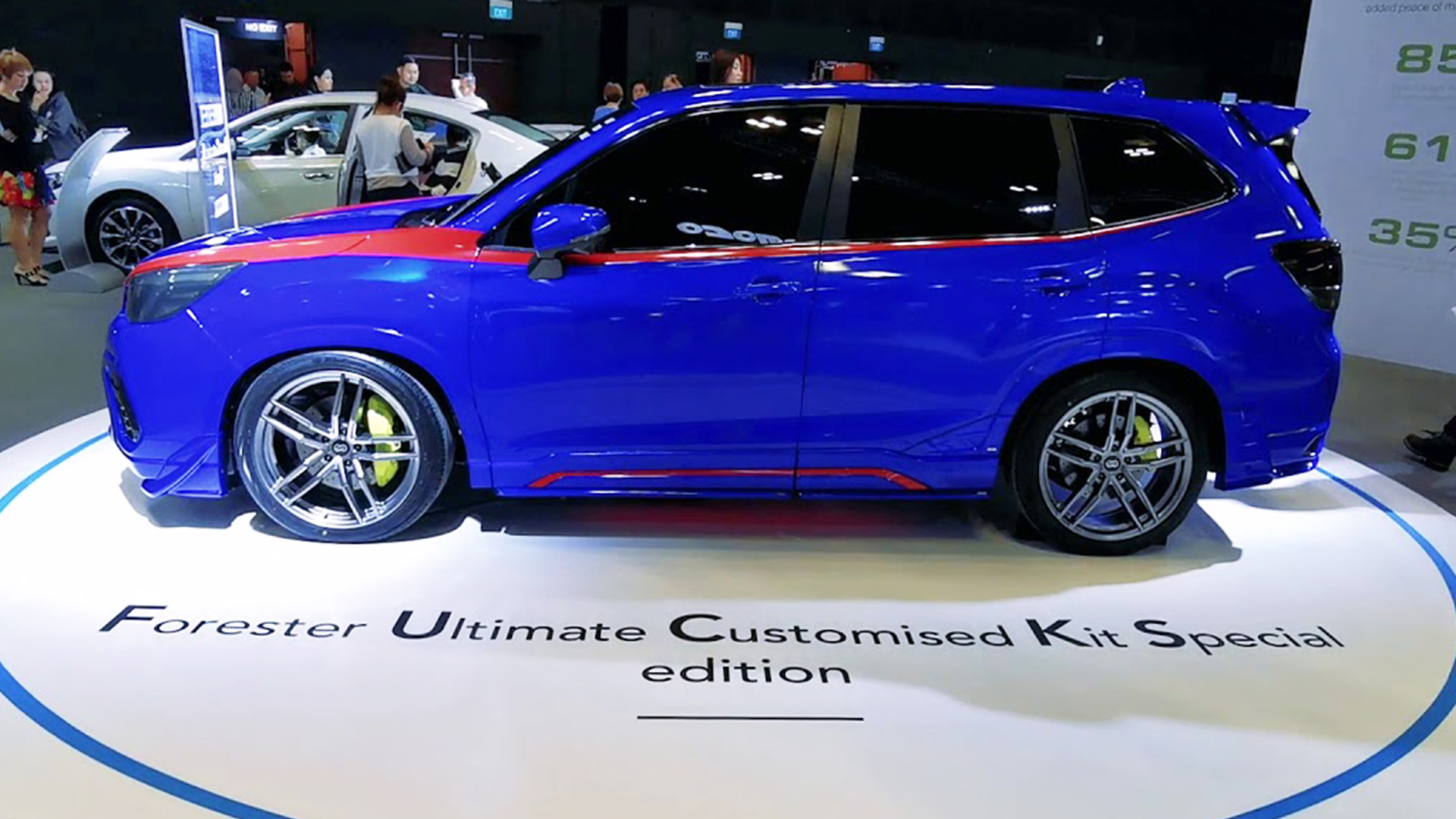 Shown off at the Singapore Motor Show this week, the Forester Ultimate Customized Kit Special was first spotted by Top Gear Philippines on Thursday. It’s not clear whether this foul-minded Forester is bound for production or simply a show car, since we can’t imagine the eye-searing blue-and-red paint job, underglow lighting, and lime green brake calipers coming out of the factory on a dealer-sold car. We’ve reached out to Subaru for clarification on that front.