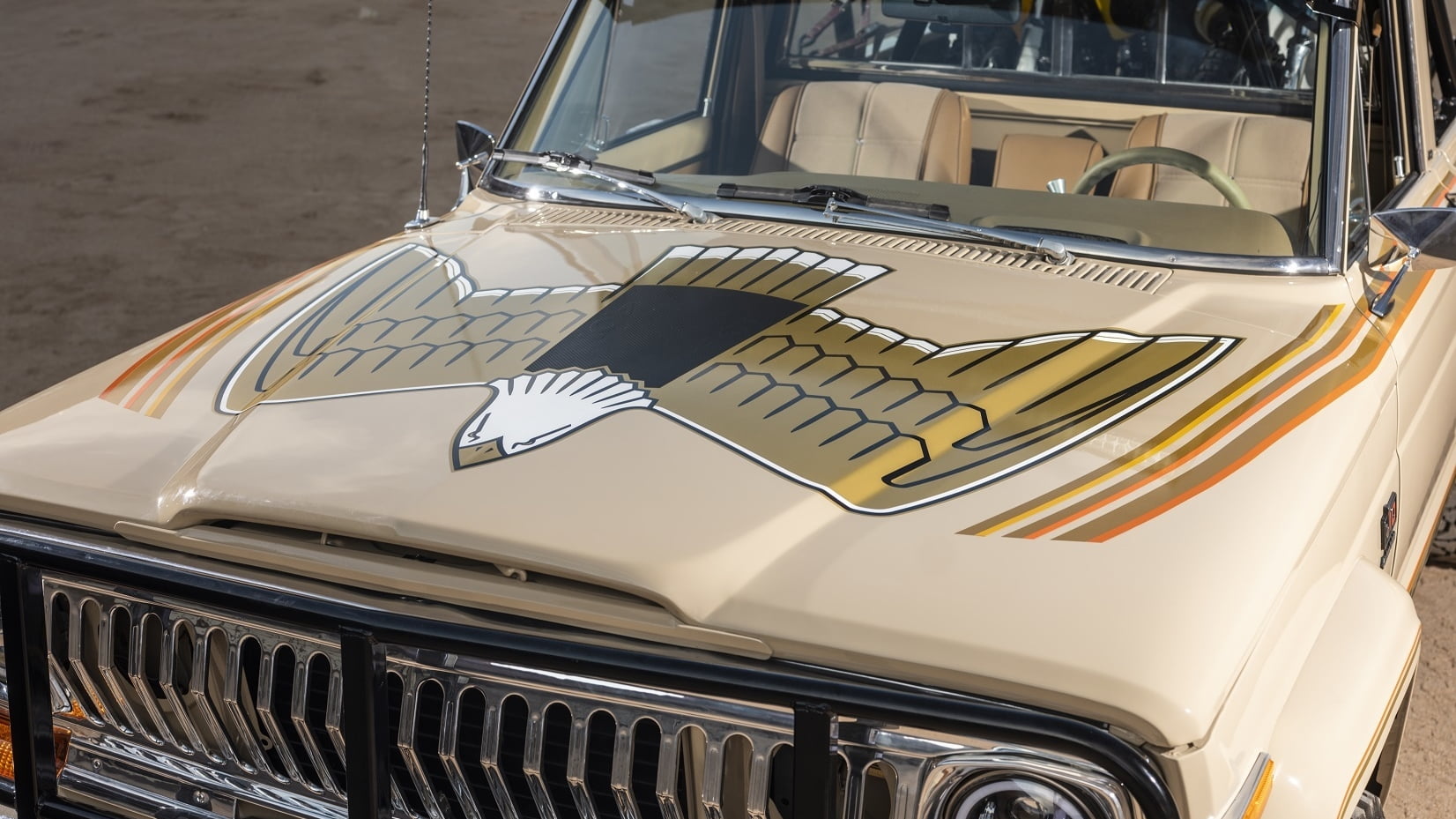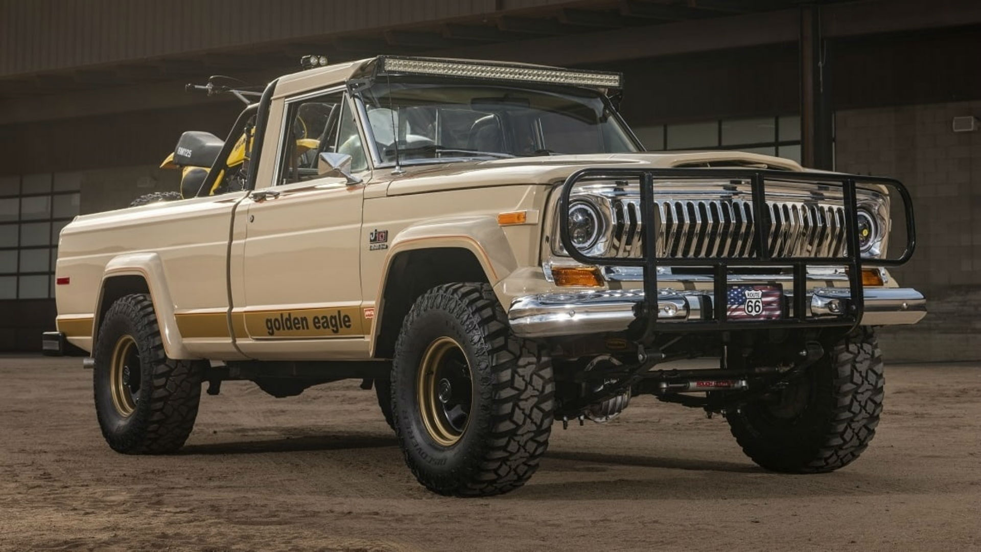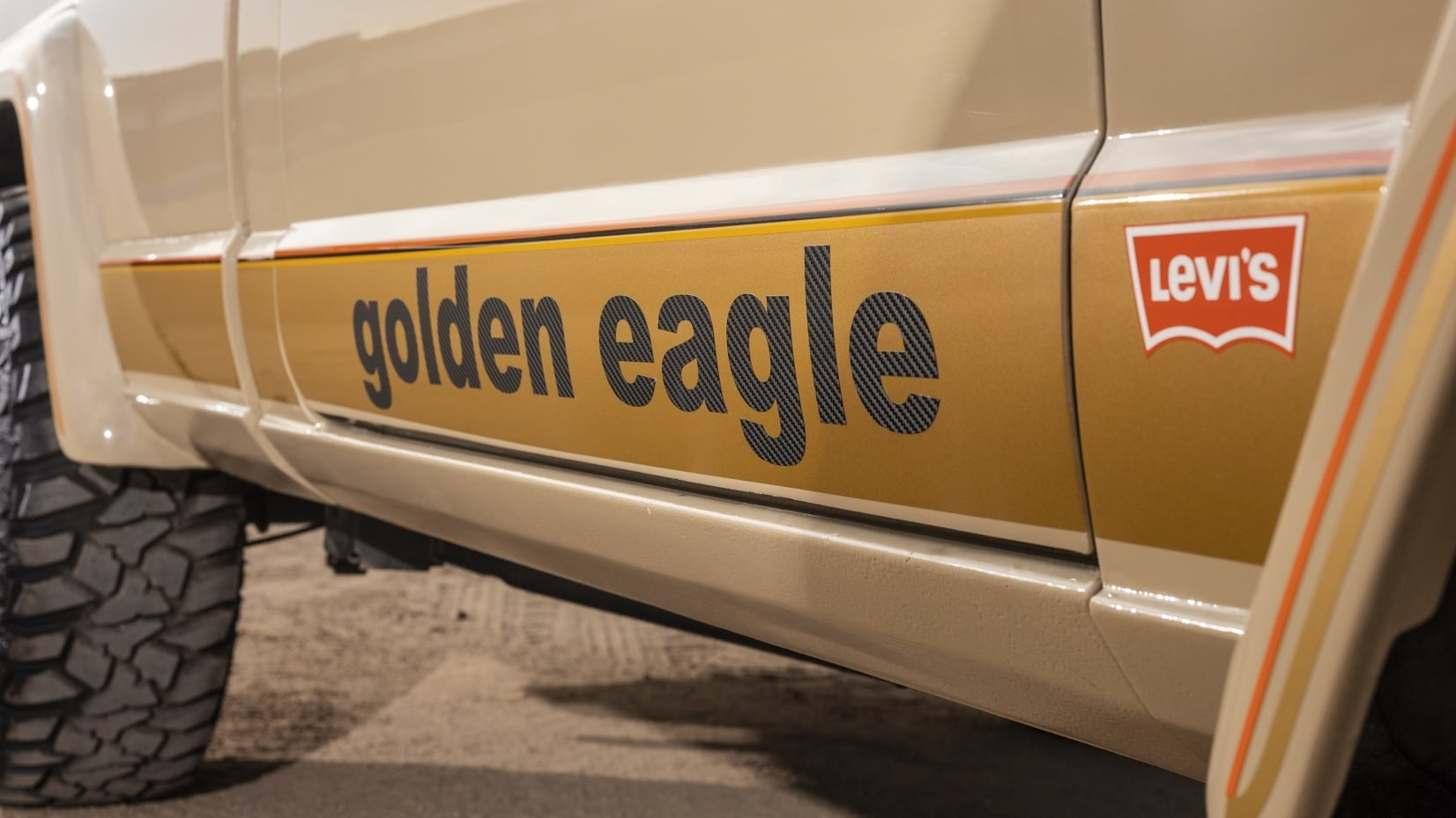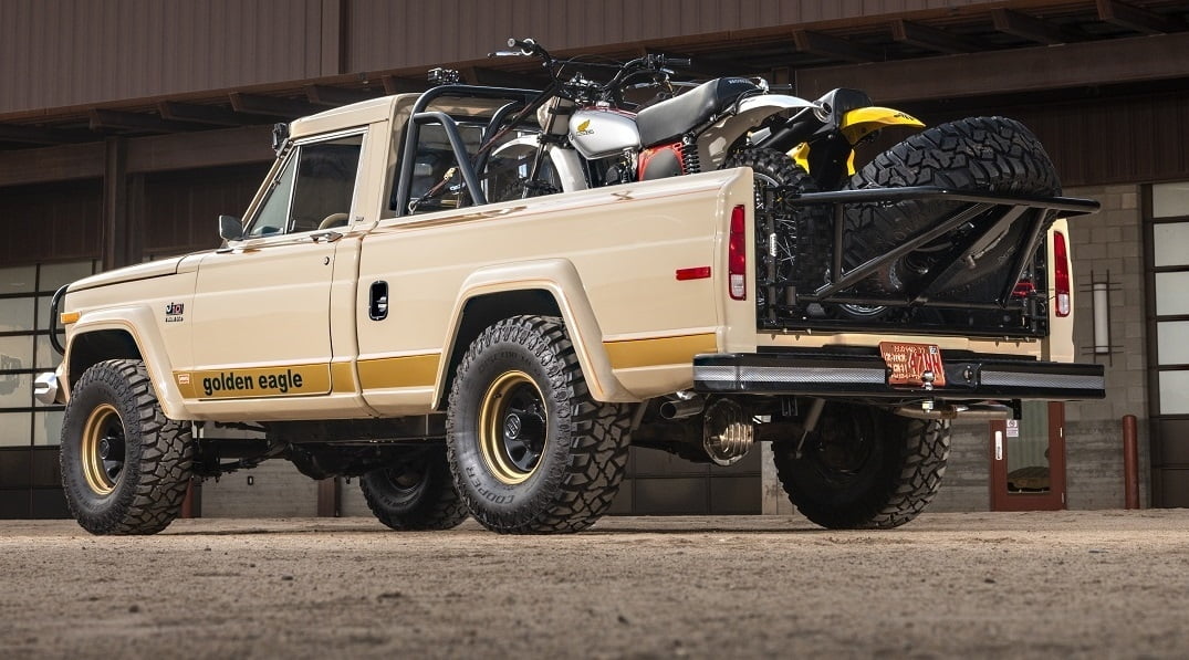 Most notable about this truck for collectors is the Golden Eagle package, which includes a brush guard, driving lamps, a roll bar in the bed, eight-inch wheels, Levi’s denim seats, accent stripes, and that beautiful decal on the Jeep’s hood. Then again, if you aren’t a collector and simply want a rough-and-tumble pickup to haul your dirtbikes in style, this works too.