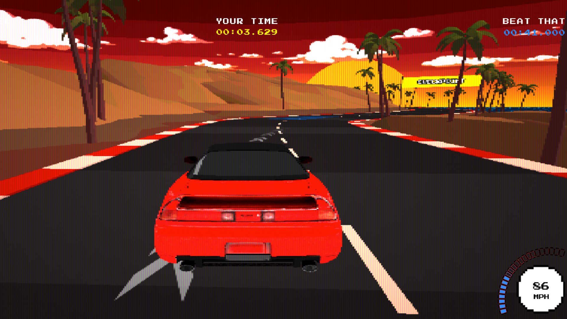 In order to progress through the levels, players must race against the clock and beat a set lap time. Once a player bests that lap, they can challenge a friend through social media to “Beat That” time. If you’ve got a few hours to kill and don’t mind tossing expletives around at work, you can play the game here.