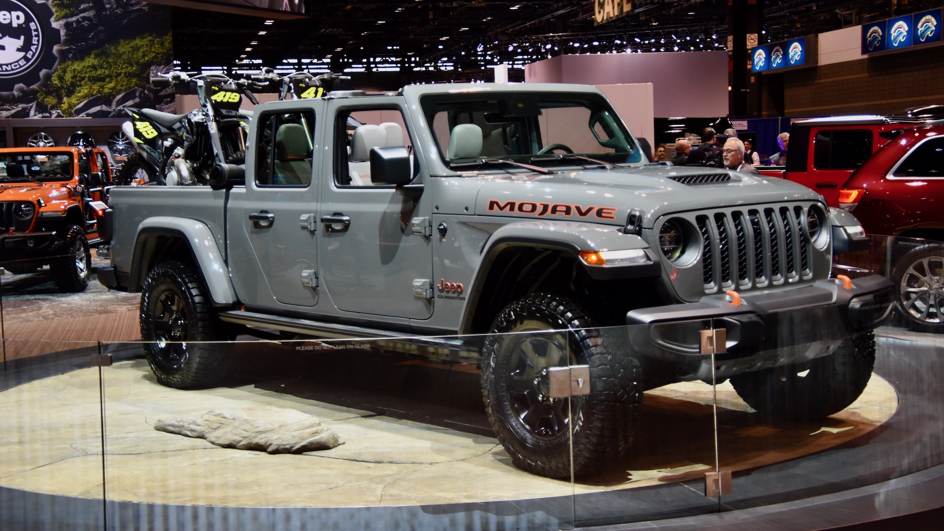 Eighteen years of Jeep’s “Trail Rated” Wrangler Rubicon has made us intimate with what the designation means a Jeep can do. But what about the new “Desert Rated” badge, which Jeep introduced on the 2020 Gladiator Mojave at this year’s Chicago Auto Show? To find out, we took a minute to talk to Jeep Gladiator Brand Manager Brandon Girmus on the show floor, and he helped clear up what Jeep promises by bestowing the Mojave name upon the Gladiator.