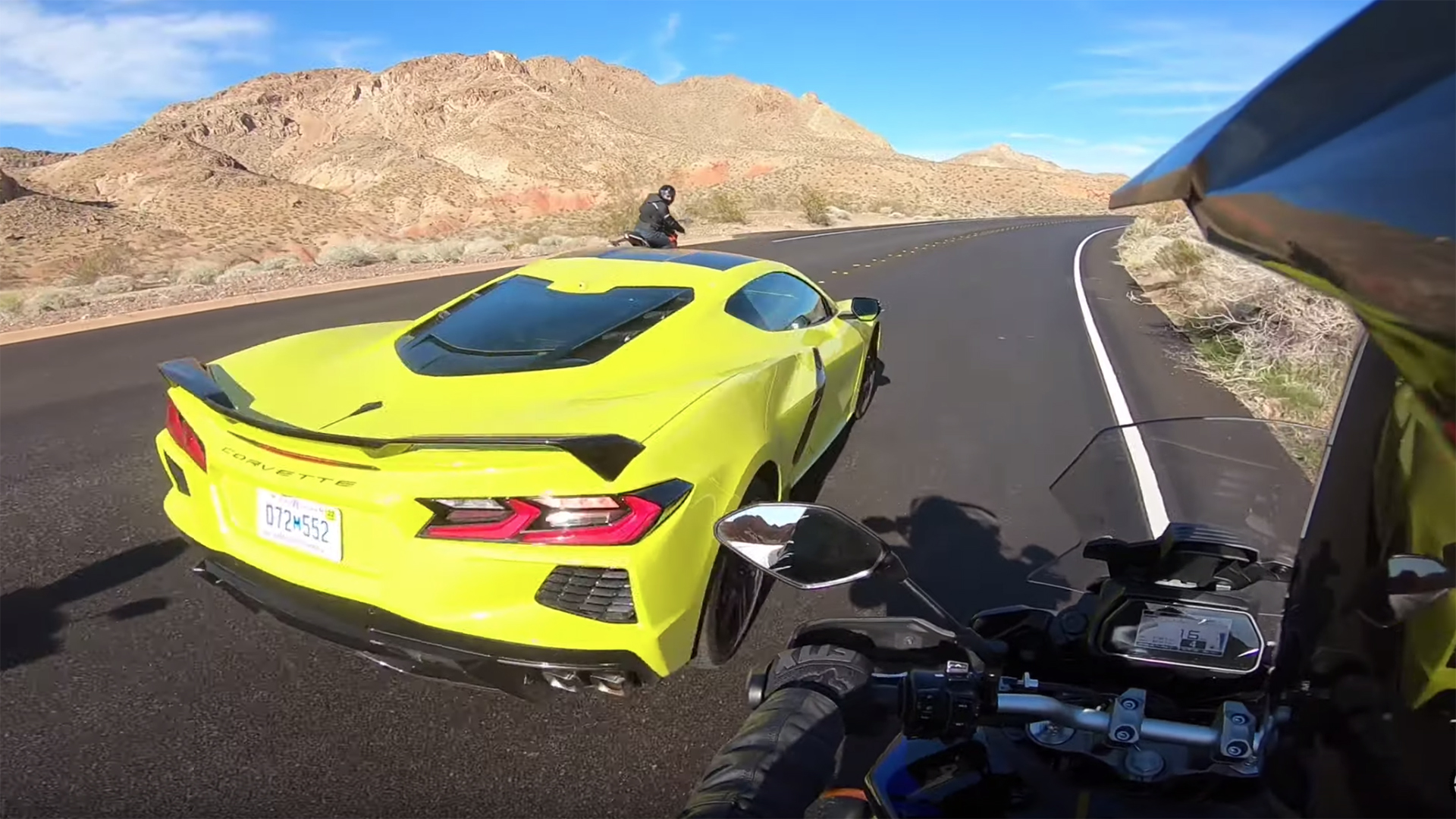Spreading around the car internet today is this scary clip showing a group of three motorcyclists nearly collide with a C8 Corvette on manufacturer plates as the driver makes the boneheaded decision to come to a complete stop in the middle of the road. We’ll set the stage for you—filmed from the lead rider’s helmet camera, the video depicts the group following an Accelerate Yellow Corvette at a safe distance as it zips along Route 167/Northshore road in Valley of Fire State Park at around 75 mph.