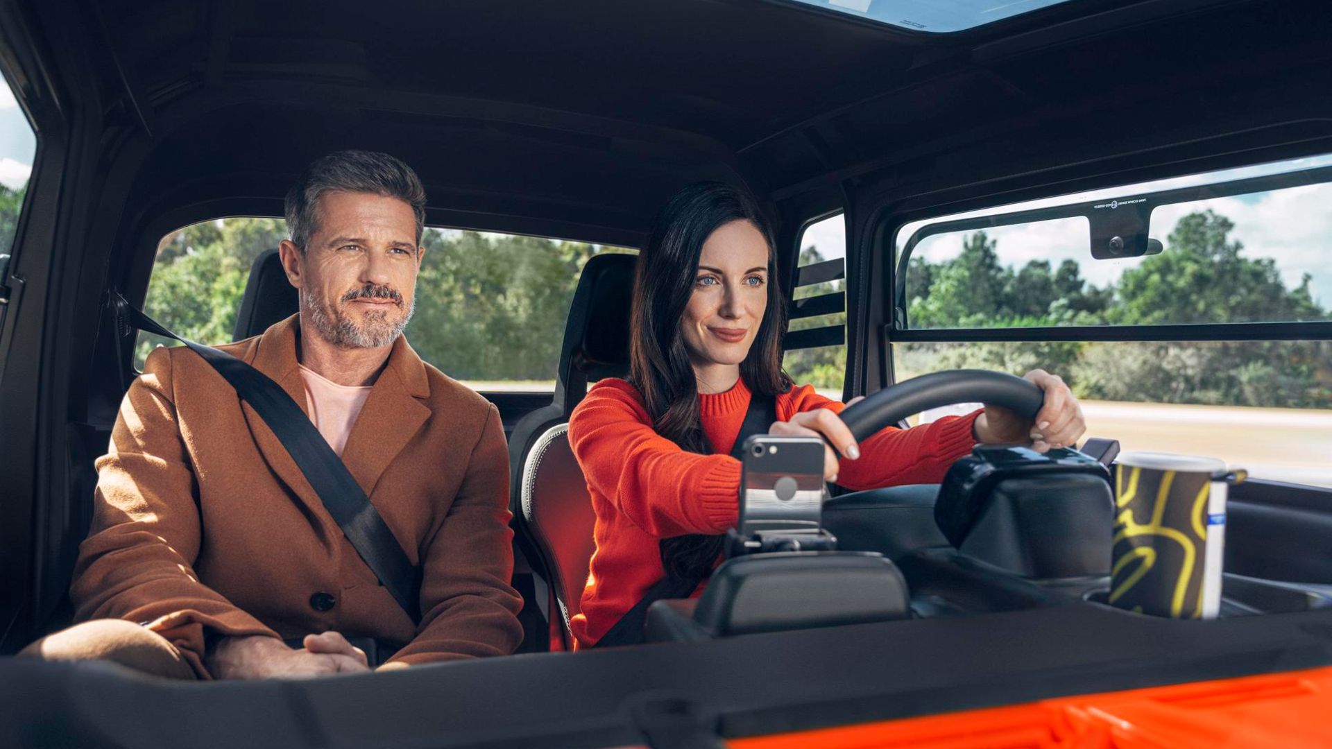 Inside, passengers are treated to not exactly a well-appointed interior, but one of spartan resource. There’s a steering wheel, pedals, an outlet jack for your phone to stream music and charge, a cup holder, and enough storage for a small bag. And that’s it. There’s no air-conditioning, though heating is included. The funkiest part, however, are the AMI’s doors, which open opposite of each other—the driver’s side opening toward the rear, the passenger opening toward the front.