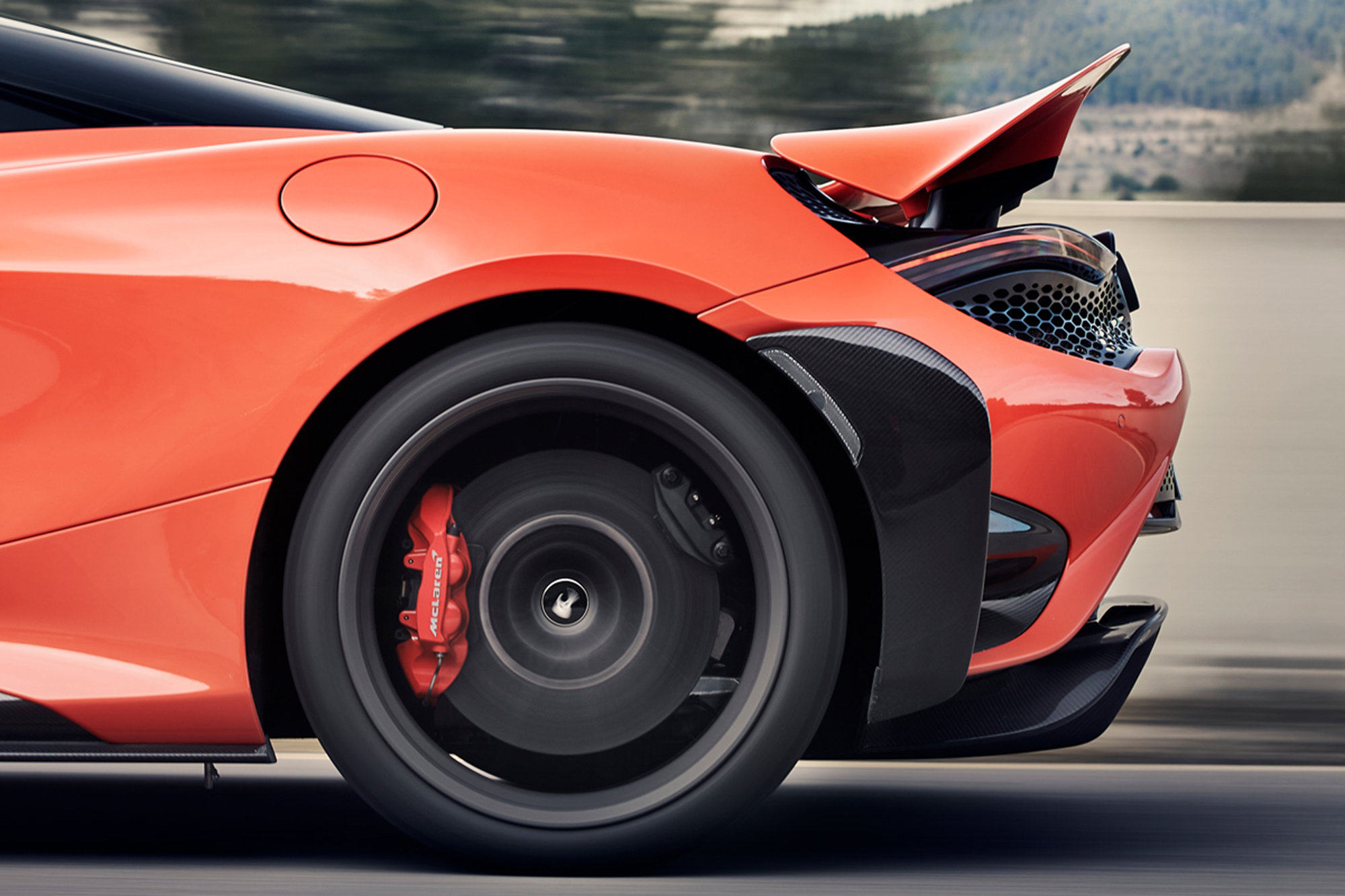 These encircle brake calipers borrowed from the McLaren Senna, which can—optionally—clamp down on carbon-ceramic rotors also sourced from the Senna, using pads with LT-specific, track-friendly compound.
