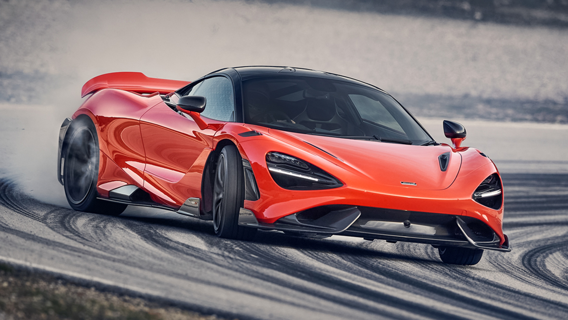 To overcome extra aerodynamic drag, McLaren upgraded its 4.0-liter, twin-turbo M840T V8 with a quad-exit, titanium exhaust to produce 755 horsepower and 590 pound-feet of torque. Combined with a lightened, re-geared seven-speed transmission and a minimum curb weight of 2,963 pounds, this V8 can propel the 765LT from a standstill to 60 mph in 2.7 seconds, and onward to 124 in another 4.5. In theory, the 765LT can run a standing quarter mile in under 10 seconds, and on a long enough airstrip, it’ll top out at 205 mph.