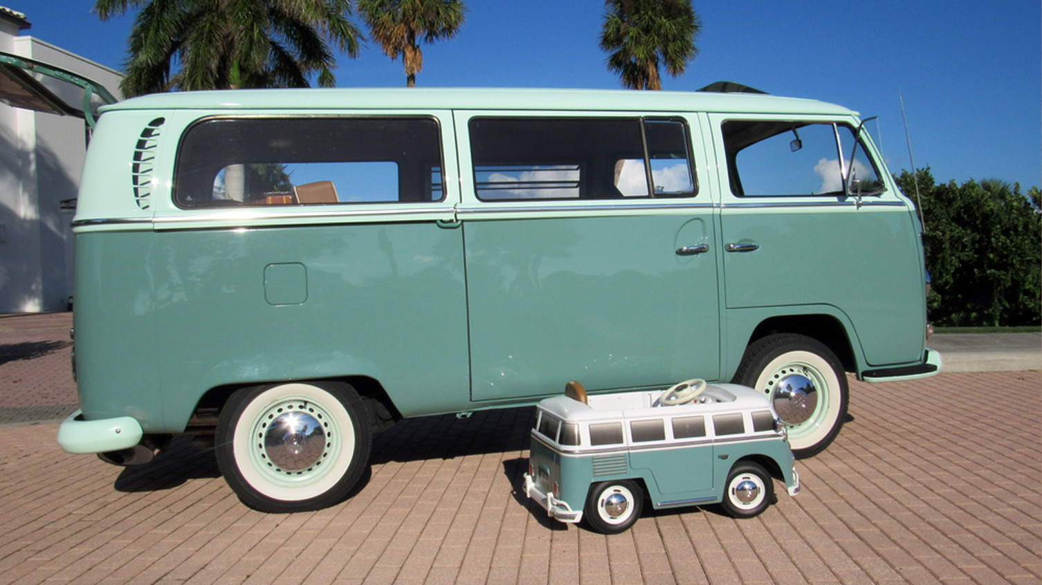 While not an exact replica in terms of window count or paint scheme, the cute copy does have some unique perks that make it rather interesting. For example, its seat is coated in a similar shade of tan, while faux-wood grain lines the floor. And to bring things together, a Wolfsburg crest is centered neatly in the middle of the toy car’s steering wheel.