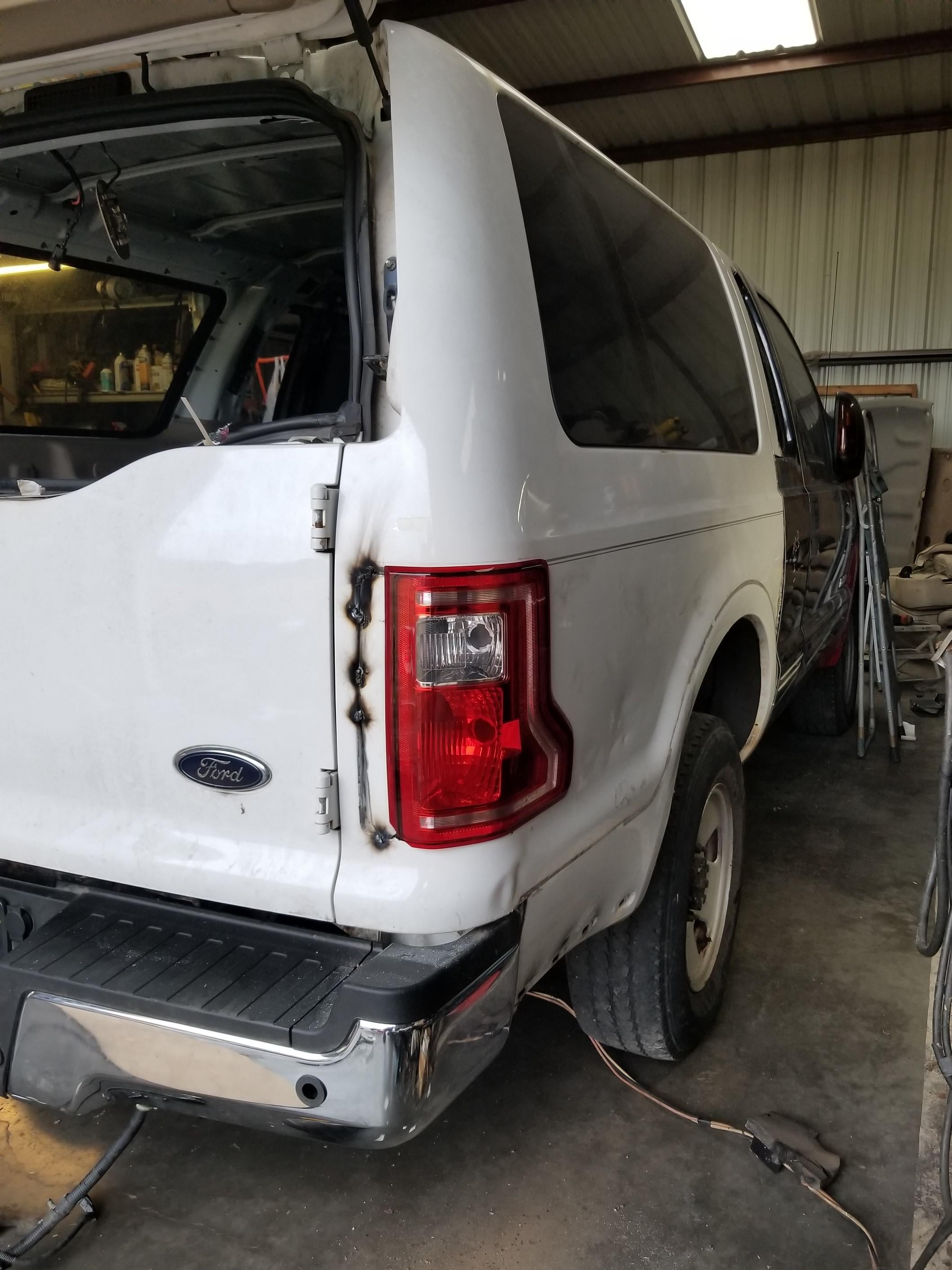 An ’01 Excursion was promptly found to donate its entire back half, including the rear frame and bodywork from the windshield aft. The original F-250’s body was cut off behind the front doors, leaving a small space to be filled by parts from yet another scrapped truck. This time, an extended-cab F-250 gave up its rear suicide-style doors which Stockman then hacked up to not only be completely functional but look totally stock.
