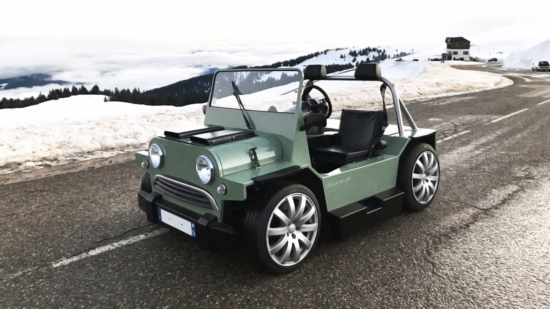 , LazarethWhile the Mini won’t have the chassis dynamics, electronic driver aids, or sheer tire needed to accelerate like an F8 Tributo, one can’t help imagining that its open roof, British chassis, and wheelbase the length of a shopping cart make it more fun than many modern supercars. Some lucky sod out there will surely find out because Lazareth is selling this vehicle tarif est disponible sur simple demande (that’s French for “price on request,” and One-Percentese for “if you have to ask, you can’t afford it”).