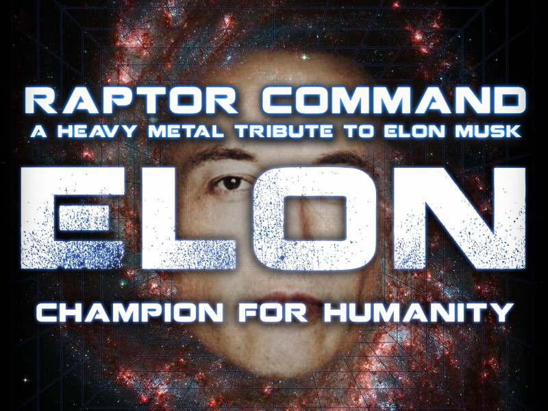 The five-piece metal group, formed last year, bills itself as “a heavy metal tribute to Elon Musk.” Following in the footsteps of acts like Hammerfall and Iron Savior, the band’s style consists, according to its official website, of “blistering guitar solos, mind bending keyboard sequences, stratospheric vocals and drums that the NRO would mistake for weapons of mass destruction.” Now, Raptor Command has released its debut single, “Elon: Champion for Humanity.” It’s available for download on iTunes and Amazon. Over a nailbomb of power metal riffs and pounding rhythm section, lead vocalist Ty Christian, he of Lords of the Trident fame, sings: