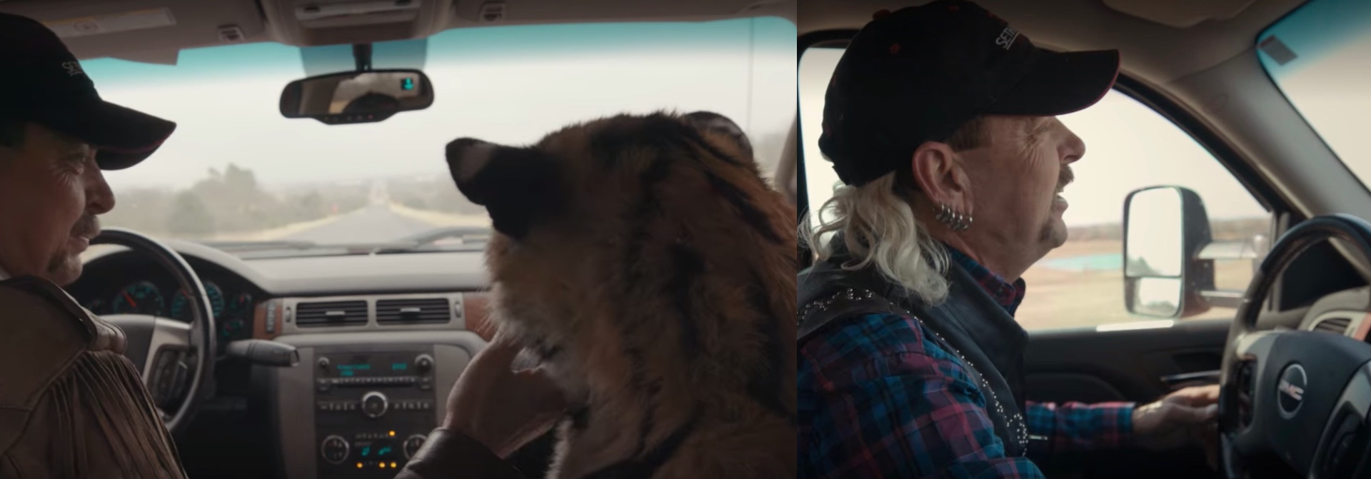 Not a lot was discussed about these GMC Sierra and Ford F-150 pickup trucks driven by Joe Exotic, but what we do know is that his tigers always rode shotgun—and that’s all we really care to know.