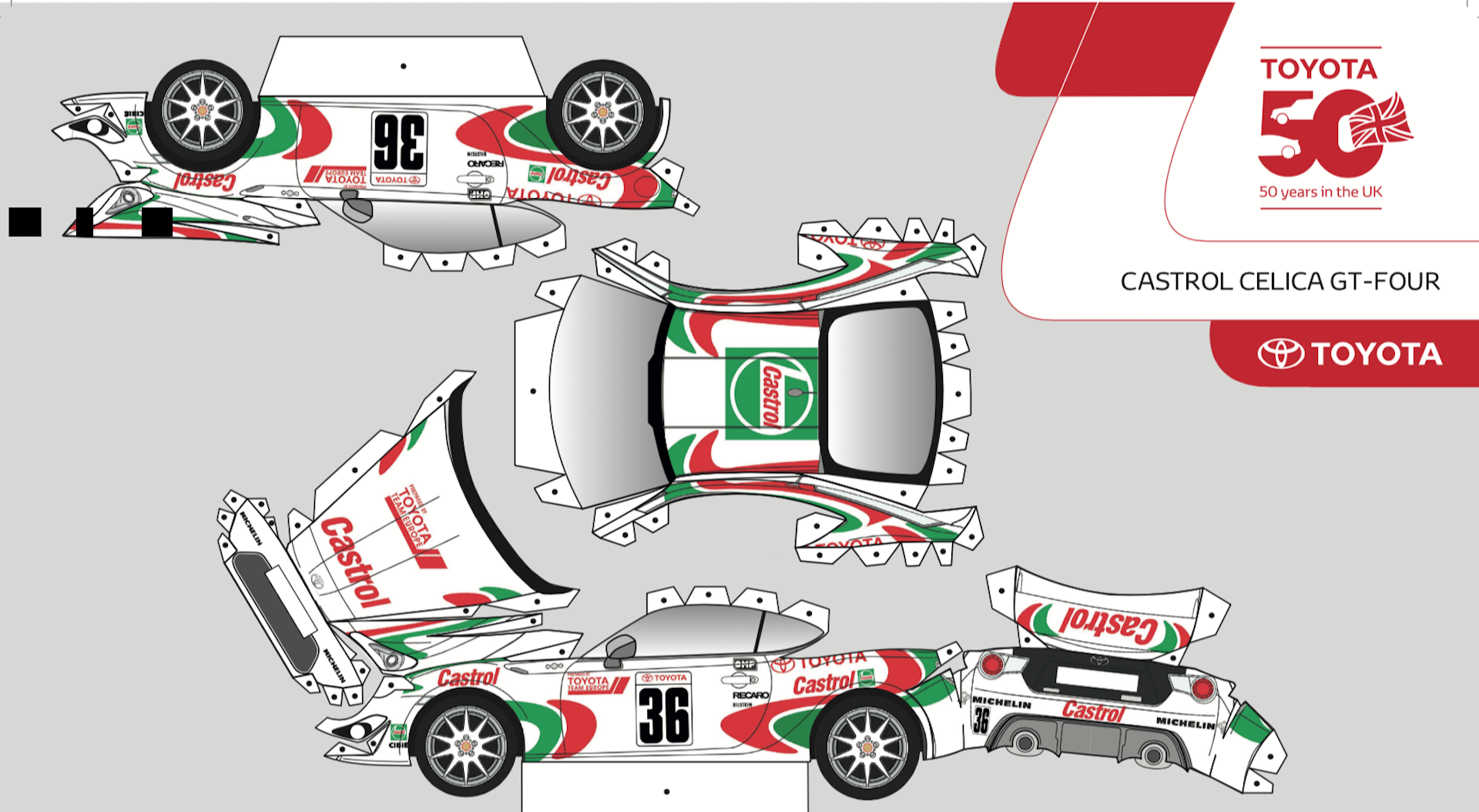 To be precise, Toyota says each one will take around one hour to build and there are six of ’em, each wearing a different racing livery from Toyota’s back catalog including one inspired by the iconic Castrol Celica GT-Four rally car.