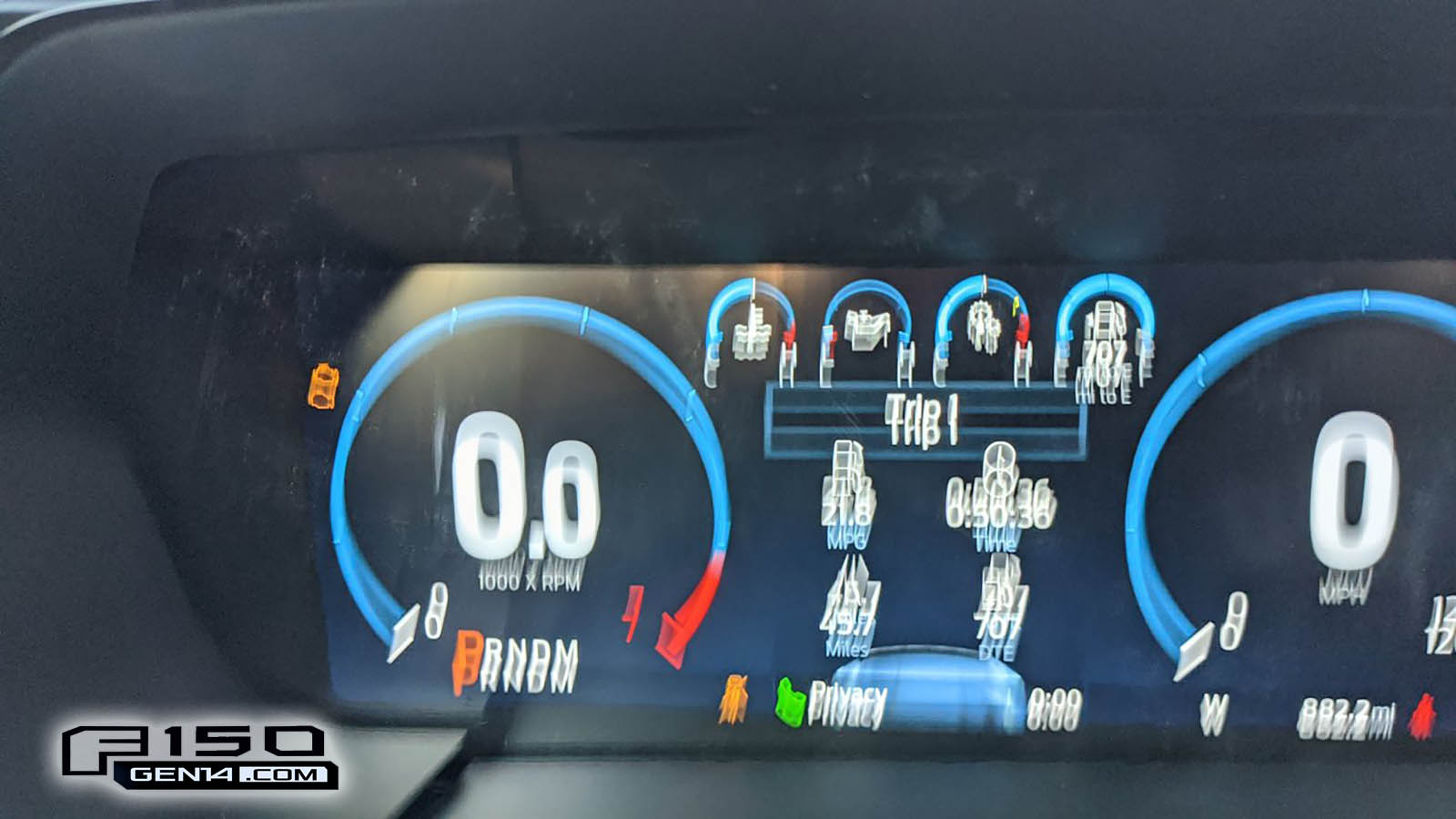 Another highlight is the fully digital instrument cluster, which is expected to be standard equipment on Lariat-trimmed trucks and up. There’s the familiar speedometer and rev-counter, along with trip meters, temperature readouts, and, of course, the fuel gauge. Though these photos show the display in only one position, it can surely show customized parameters and control various vehicle functions.