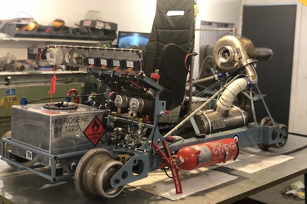 Bradley’s an ambitious lad though and has his sights set on a goal far loftier than running at two-digit speeds on neglected sidings. His goal for the Speedbird is to demolish the record for the fastest narrow-gauge prototype railway vehicle, set by some bizarre, tilting diesel locomotives at 109 mph. Bradley aims to raise that bar all the way to 120 mph, and to accomplish that, he’s equipping the Speedbird with a novel form of propulsion for a locomotive: a jet turbine.
