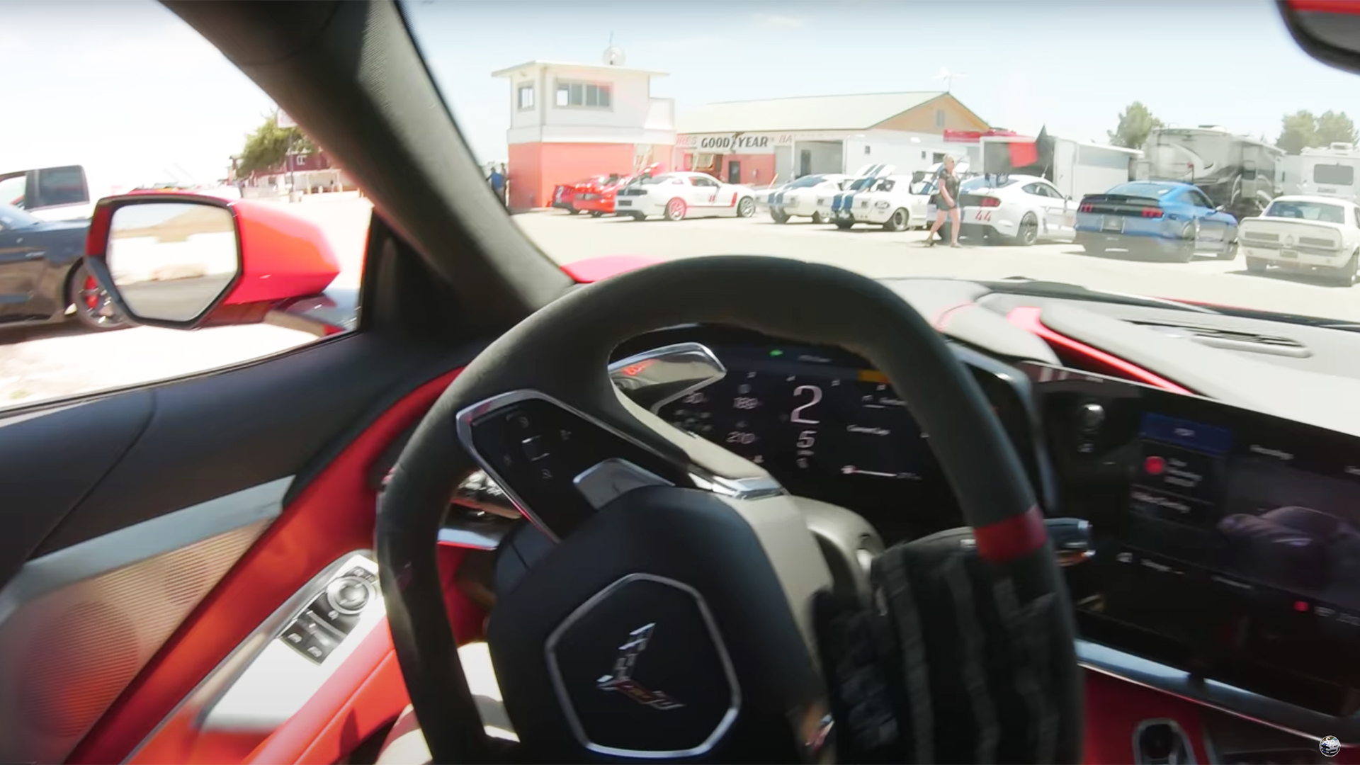 Midway through the day, he switches to his Corvette; he doesn’t even get through a single lap before he’s black-flagged and called into the pits, where he’s asked by the organizers how exactly he got on the hot track. The interaction is bizarre, with one official telling him that “we don’t allow Corvettes on the track” and advising him to park it or sell it. He protests that he also owns Shelbys—why exactly that would matter will become clear in a minute—before dropping the bomb: “I just don’t understand the hatred towards the other brands.”