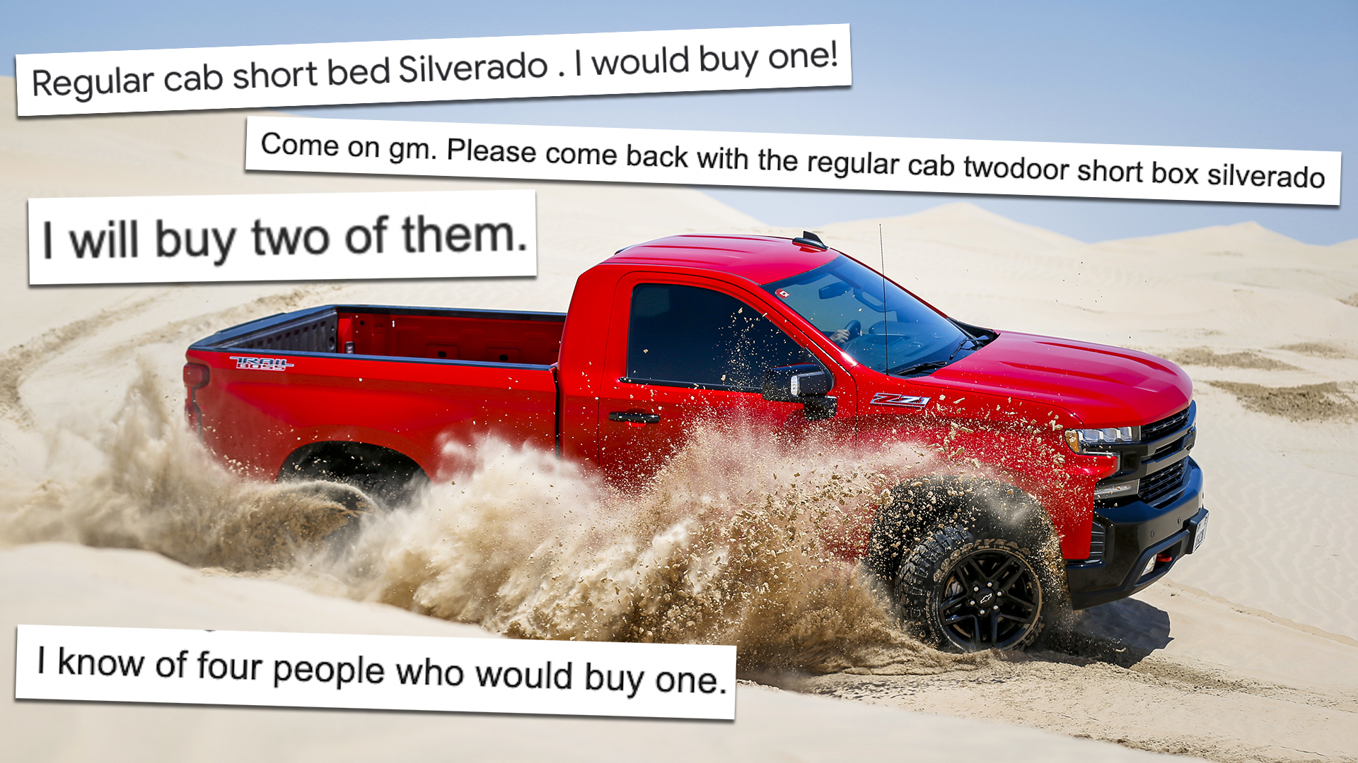 Of course, people would actually have to buy these trucks to make it worth GM’s time. This is a major sticking point and the excuse automakers almost always use for not building what enthusiasts say they want. However, if the dozens of reader emails we’ve received about a single-cab, short-bed Silverado are anything to go off of, people really do want these trucks.