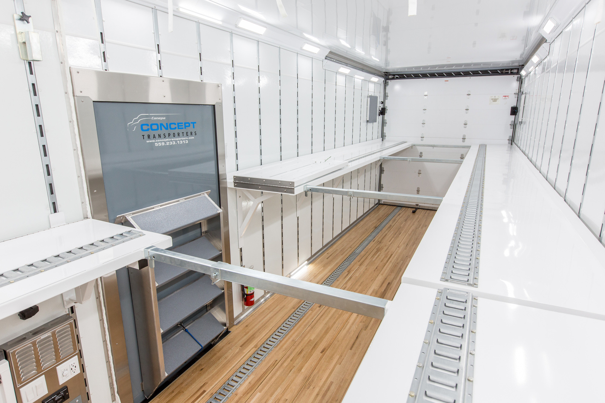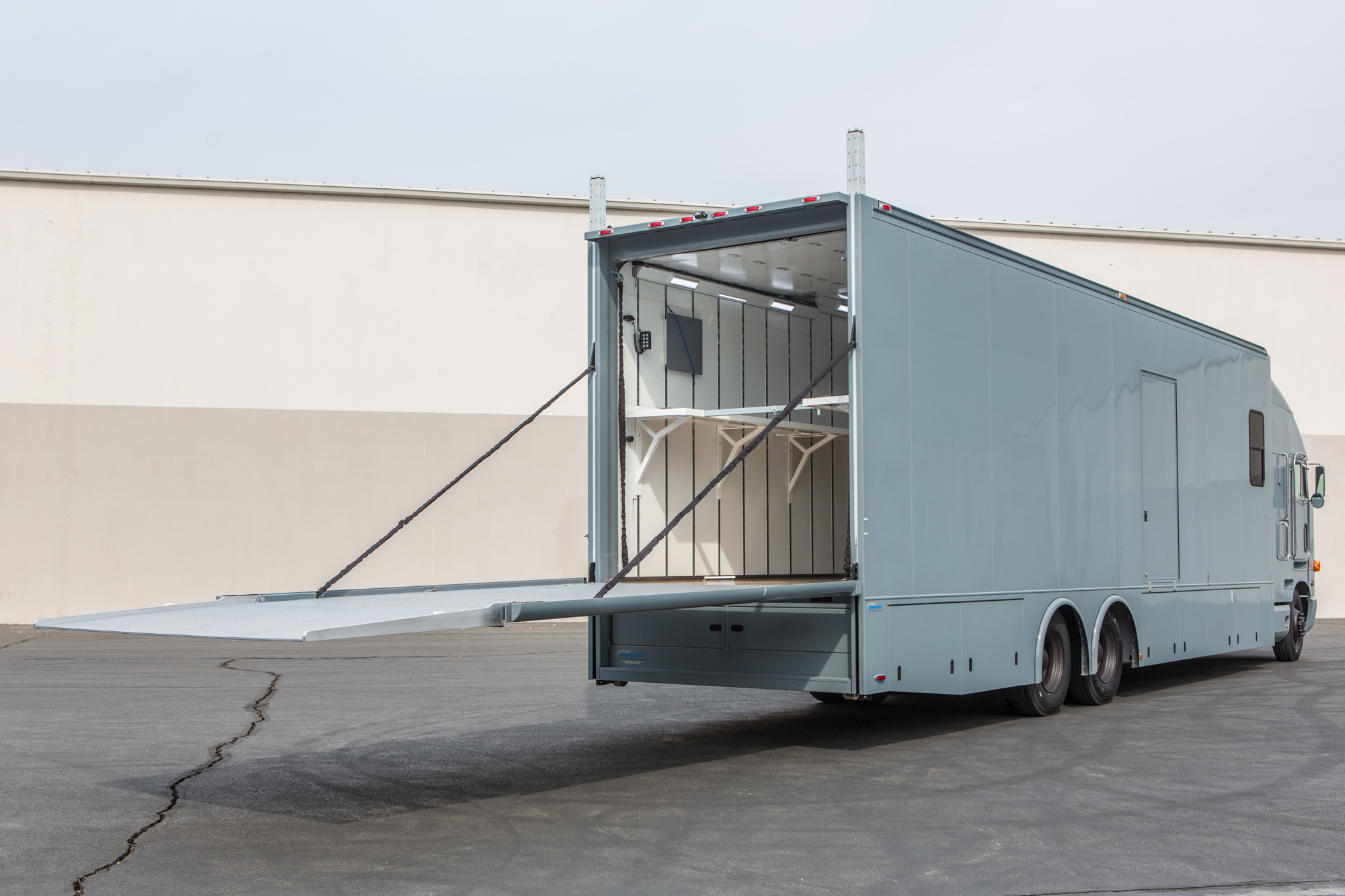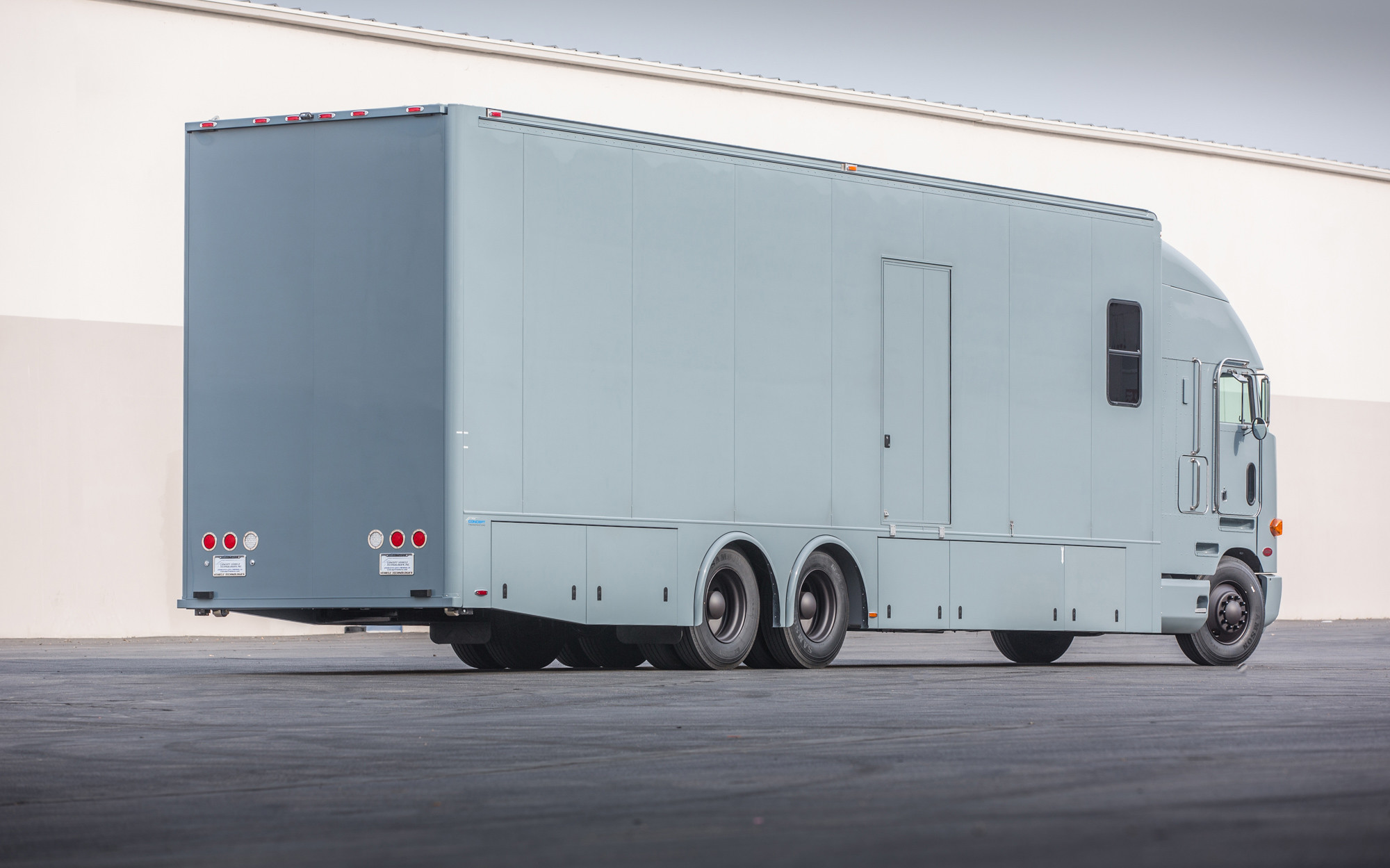 Canepa’s company, Concept Transporters, started with a Peterbilt 372 cabover and then stretched the truck’s frame to accommodate the transporter body. The design was made a reality with rivetless aluminum panels, giving it European flair and a futuristic feel. Finally, the Peterbilt and its even more custom trailer were coated in Basalt Blue—a classy touch on a classy rig.