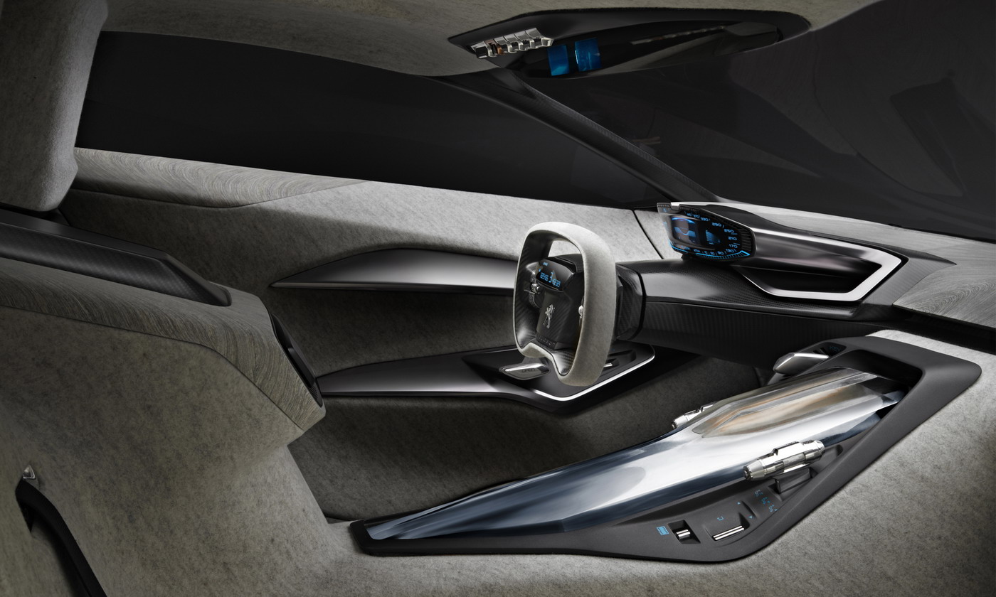 Since the Onyx is a working concept, it has all of the components necessary to make a car, uhm… go. The engine, as mentioned before, is taken from Peugeot’s successful 908 Le Mans race car, as is the transmission. In addition to the 600 horsepower, 3.7-liter turbodiesel V8, the Onyx also has an 80 horsepower electric motor. Juice for the motor is gathered during braking and stored in a lithium-ion battery. All of this Power is sent through a 6-speed sequential gearbox to the rear wheels, where the rubber meets the road through two 345mm-wide rear tires.