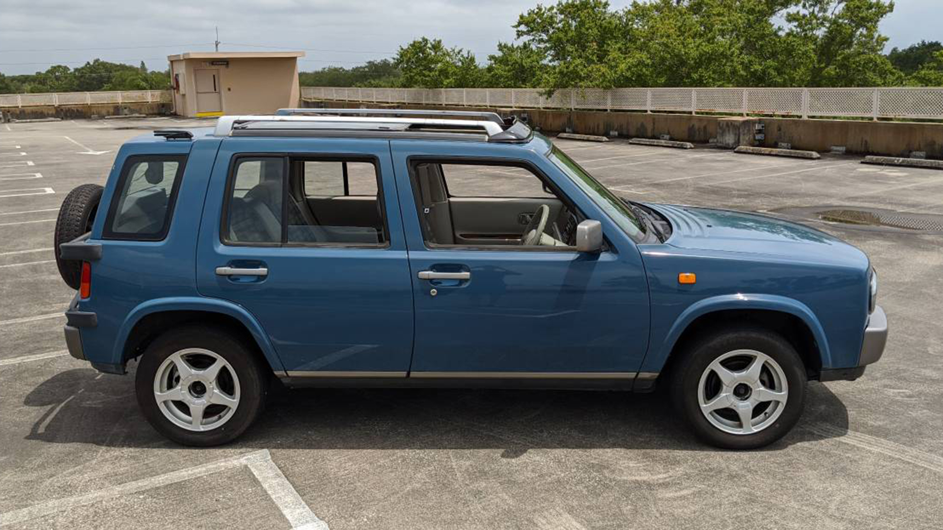 I think this thing would be perfect for the beach, or a tow-behind vehicle for an RV. It has AWD, air conditioning, and it only weighs 2,890 pounds, great for dancing over the dunes. It also has a ton of room in the back with the seats folded down. Built on the B14 Sentra platform, it certainly can’t cash the checks its boxy body and rear-mounted spare are writing. But it’s a fun enough time with the manual.