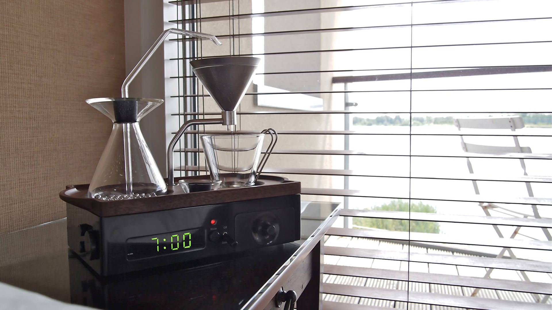 This cool piece of gear is looks like some type of Rube Goldberg invention. The Barisuer Coffee Alarm Clock ensures you wake-up on time, then immediately starts brewing the perfect cup-of-joe.