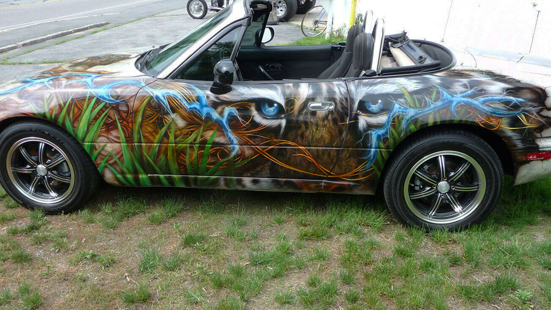 I think I’m a reasonable man. If I had the opportunity to buy a car, brand new, straight off the factory floor, I would probably go with a cool color. That’s not unreasonable, right? I’m skipping straight past the blacks, whites, and greys—show me the greens, the yellows, and the purples. For some people, though, the manufacturer’s palette isn’t enough. Also, you can’t get all your favorite big cats airbrushed on the hood in a full-car mural that’ll make men weep.