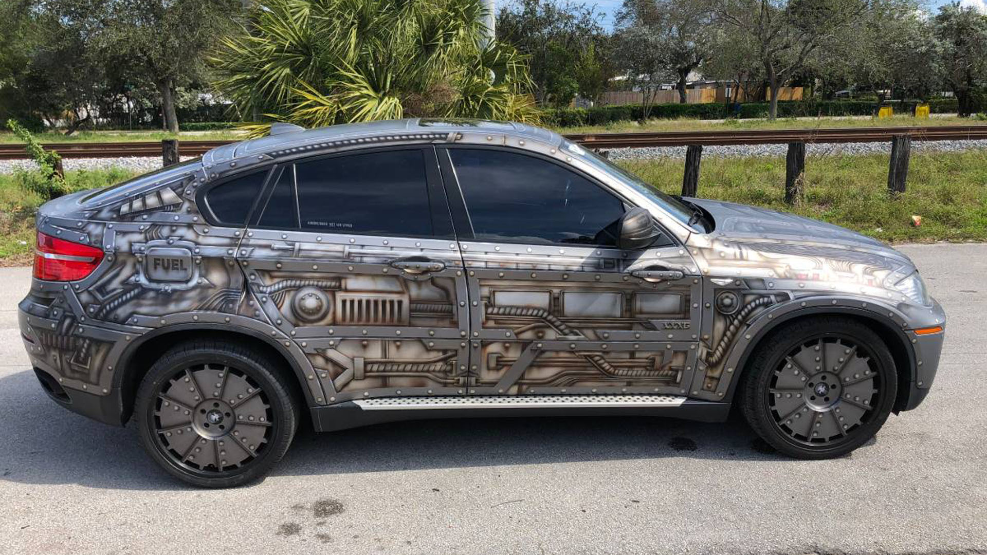 We’ve featured a bizarre airbrushed masterpiece before, but that one lacked a real theme, you know? There were big cats, masonry, doves—it just wasn’t cohesive enough for our carefully-honed artistic tastes. So we went on the hunt for more well-rounded, complete pieces. Miami Craigslist delivered. This BMW X6 is so confident in its cyberpunk identity, the seller insists you be aware the car has not been wrapped. This paint job is permanent.