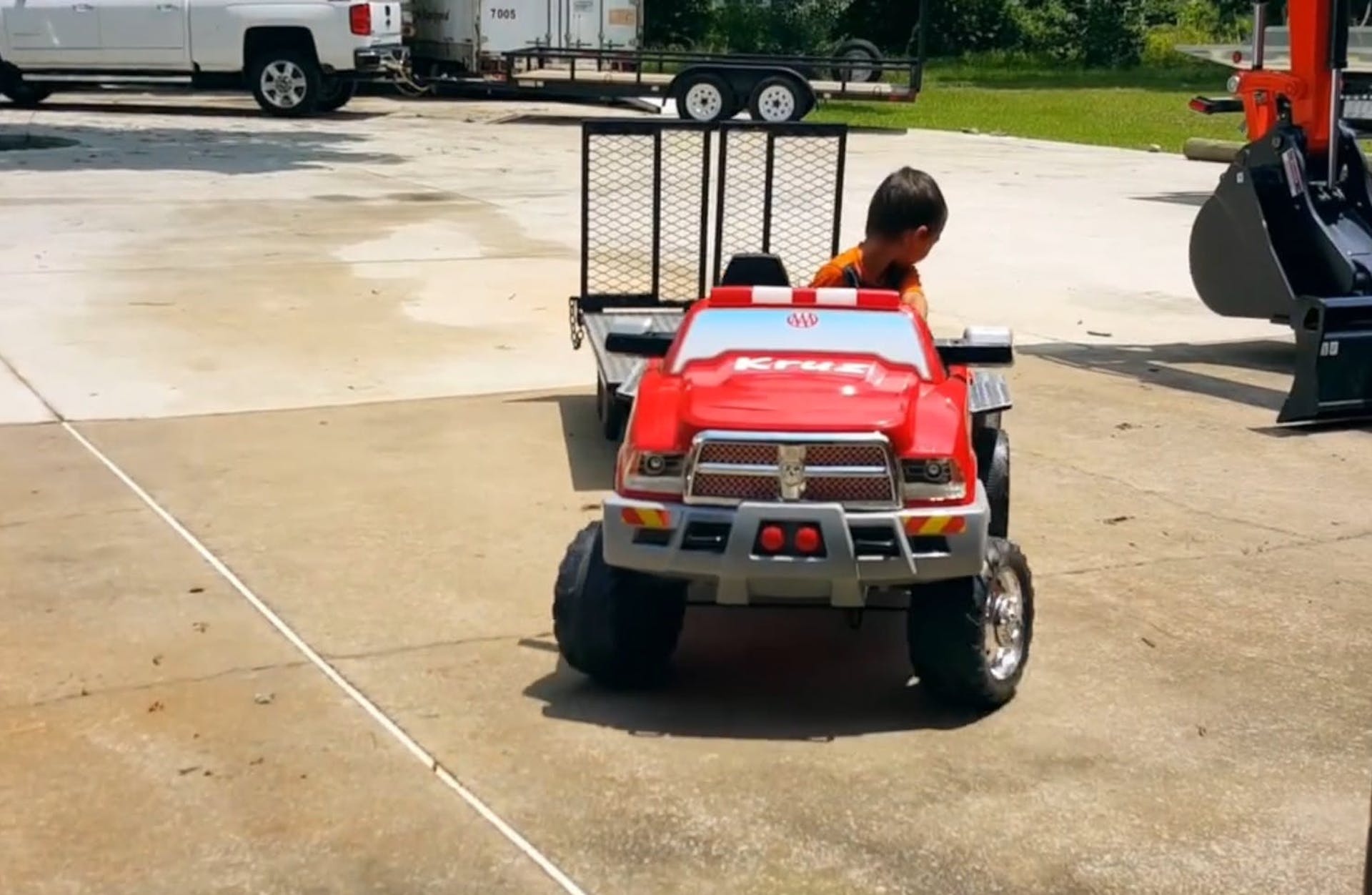 Well, putting most adult truck owners to shame with his trailer-reversing skills is a kid named Kruz, who can be seen here taking his trailered-up Ram Power Wheels for a backward lap around the driveway with minimal issues and maximum confidence.