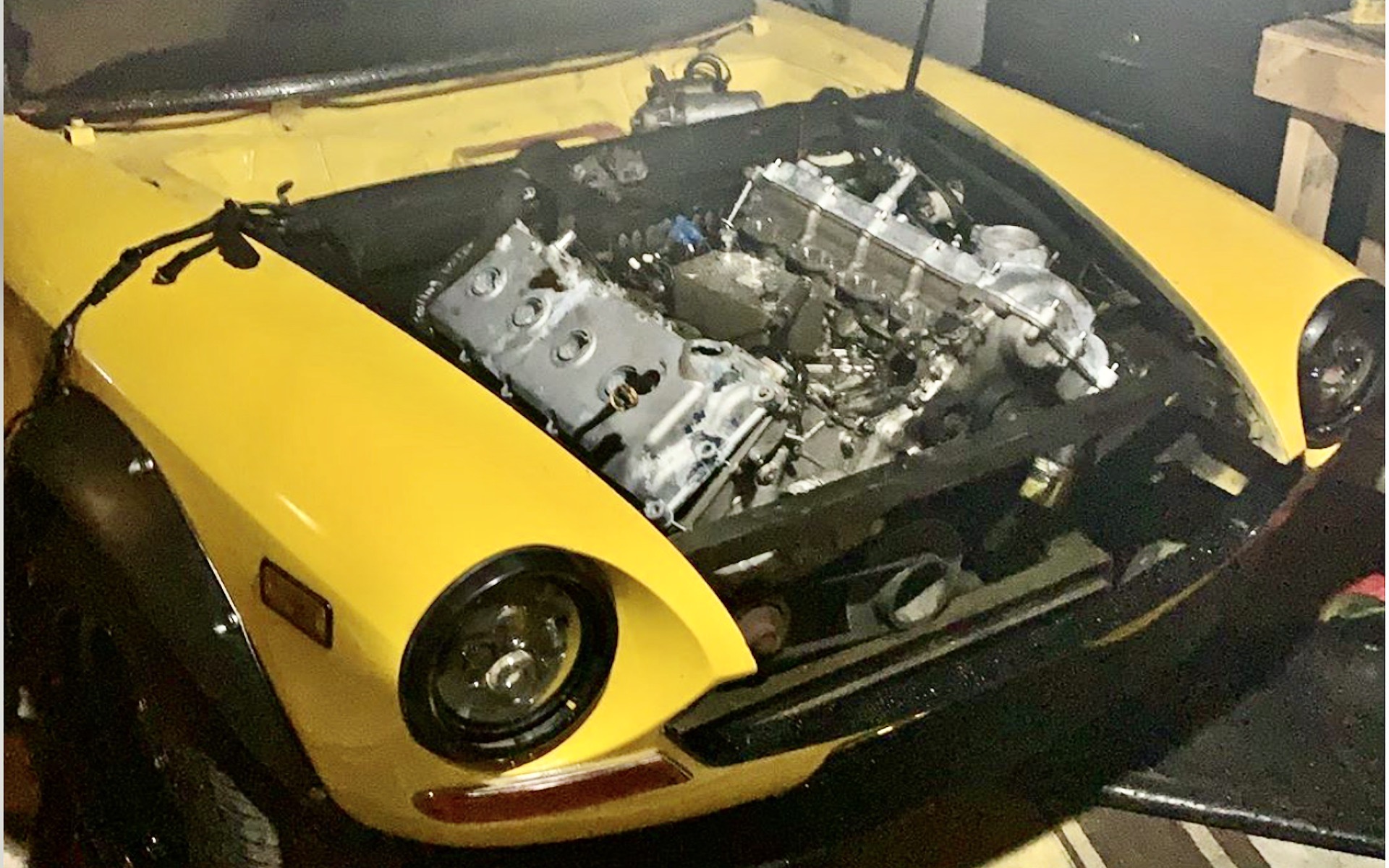 Johnny Fargas-Diaz has a lovely 124 Sport Spider and a big ol’ Ferrari-Maserati F136 engine. This particular 90-degree V8 was used in Ferraris, Maseratis and Alfa Romeos starting in 2001, dropping into everything from the Maserati Quattroporte to the Alfa Romeo 8C and the Ferrari 458. The F136 U going into this car was made for the Quattroporte.