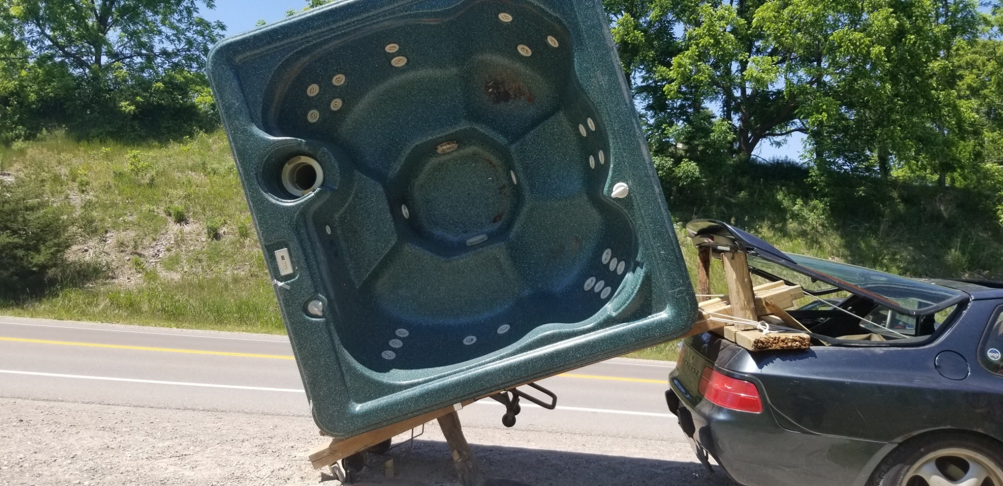 All the time I’m sniffing around Craigslist, trying to find the right hot tub. When I do, I’m just so excited. I run outside, build a trailer out of a hand truck and scrap wood, and hook the whole thing up to my old Porsche 944. What, you don’t do that?