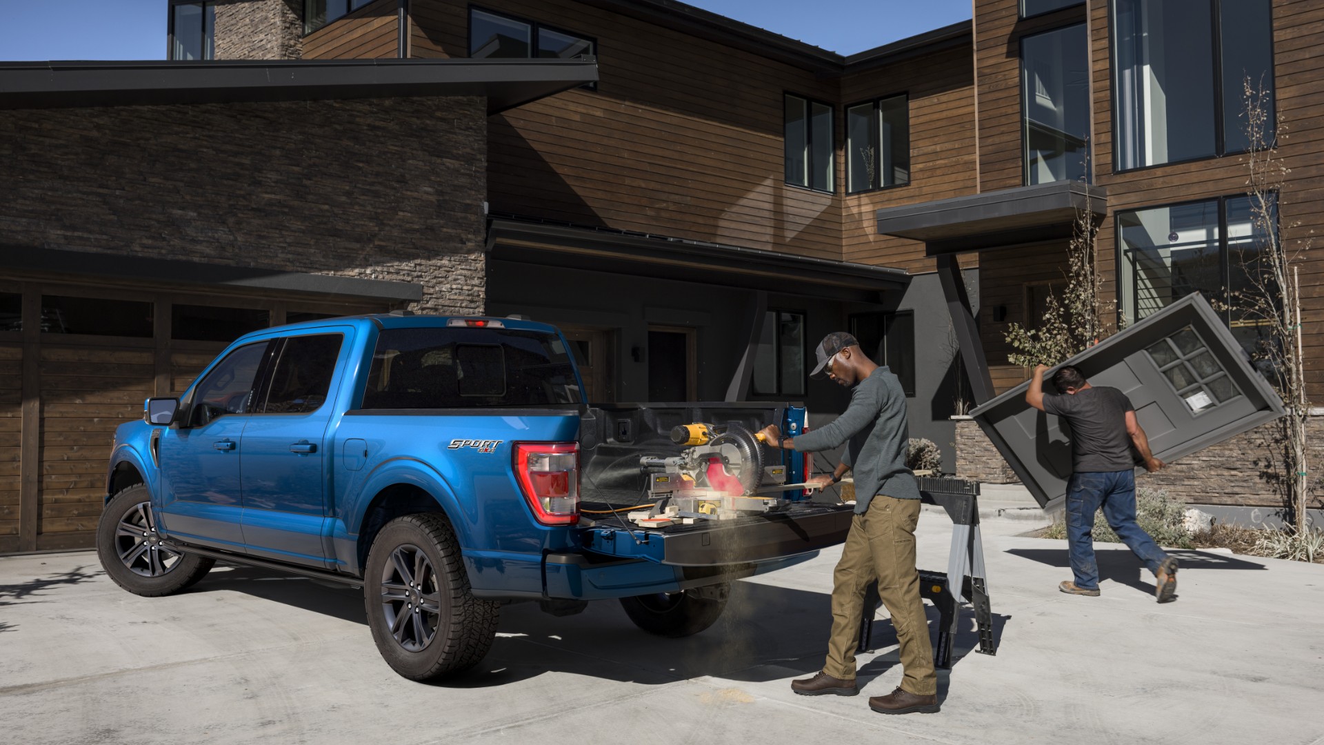 Every F-150 tailgate comes with clamp pockets to hold down materials to work on them right then and there. Cleats are integrated into the sides of the tailgate to use as tie-downs for hauling longer objects.