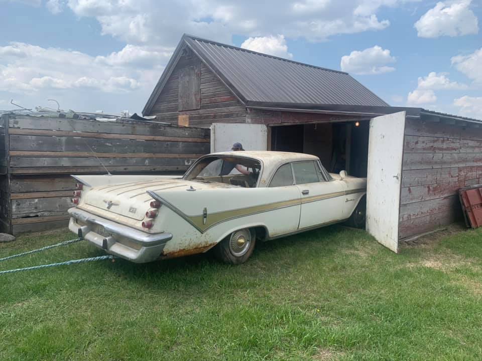 By 1965 the engine was blown and the son sold the car for 300 bucks to the second owner. He fixed the 383ci V8 and drove it daily. He met and married his wife in this car and was driving it the day he received his draft notice letter in 1968. Before shipping off he parked the DeSoto in a wooden shed. Unfortunately, when he came back, the car didn’t want to start. And with gas prices on the rise, he decided to just leave it in storage. Life’s priorities took over and this DeSoto sat in that shed from 1968 until Ryan dragged it out in 2019.